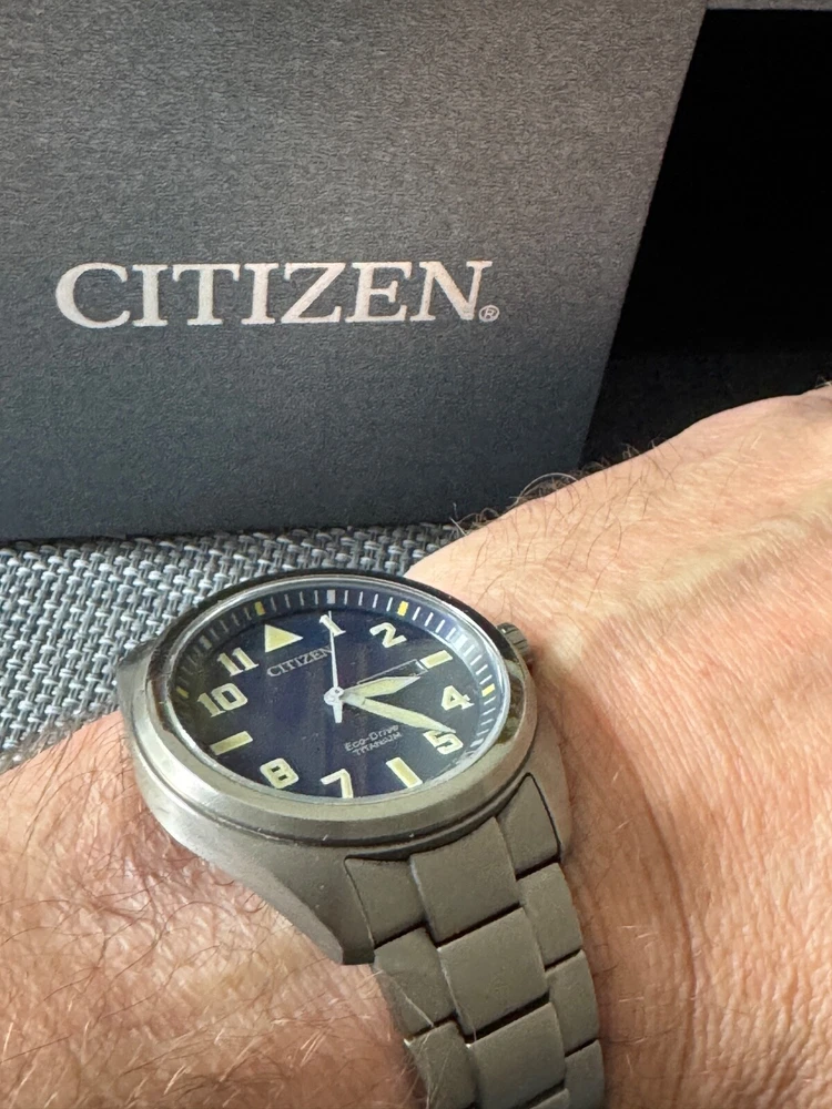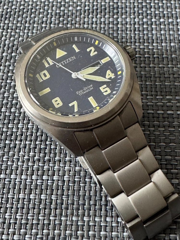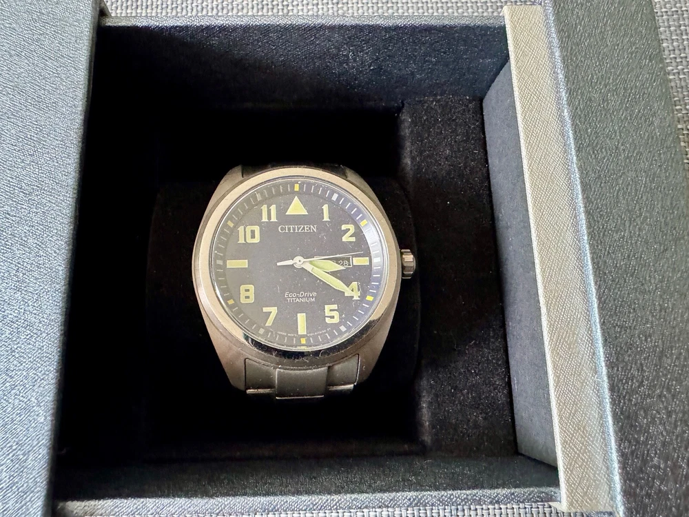 Citizen Eco-Drive Titanium Men's Watch Dark Blue Dial H460 Box & Manual Description: Up for sale is a genuine Citizen Eco-Drive men's wristwatch featuring a lightweight and durable titanium case, classic field watch design, and solar-powered H460 movement. Key Features: Model: Citizen Eco-Drive AS Series (Caliber H460) Dial Color: Dark Blue Case Material: Titanium Power Source: Eco-Drive (solar-powered, no battery changes required) Display: Analog Movement: Quartz (H460 Eco-Drive) Luminous hands and hour markers Original Citizen box included Instruction manual included Very good condition This timepiece is perfect for everyday wear, outdoor enthusiasts, or collectors of Citizen Eco-Drive models. Note: Sold as-is. Please see photos for exact condition. Please review all photos carefully and feel free to ask any questions before bidding or purchasing. You will receive exactly what you see in the pictures. The photos are an important part of the description, so please examine them closely and refer to the details below. Please note that real colors may slightly vary due to individual monitor settings, which are beyond my control. If you have any questions or need additional photos, don't hesitate to reach out before making a purchase. Thank you for looking! Dear Buyers! Please understand that wristwatches (and clocks) are very delicate. I always pack them carefully to ensure the highest level of protection during shipping. However, factors such as high-altitude flights, vibrations, atmospheric pressure changes, extreme temperatures, and frequent handling during transit may affect the movement. For this reason, I cannot guarantee perfect functionality upon arrival. Please keep in mind that you are purchasing a used timepiece and it may require servicing, cleaning, lubrication, or calibration to function optimally. ATTENTION: The description contains reference to pictures and video clip. Please, look carefully and decide that you are happy with everyone. The lot is sold “with all faults” or “AS IS”. NO WARRANTIES ARE EXPRESS OR IMPLIED. Items that are supposed to be operational according to the description in the listing can be returned if they are D.O.D. Items that are untested or are sold ‘AS IS’ can not be returned. No refunds or claims! I guarantee, that the image on the photos shows the real state of the Citizen wristwatch in real life. Whenever I make a delivery, I make a video from the post office and give you a link. You can always see what I am sending to you. So, if you received a Citizen wristwatch in a condition that is not what I sent to you - I ask you to do the same, to do video from the post office or by the courier who will deliver the parcel to you. Since a third party is involved in the transaction - in this case the postal service is the third party - only if there are such arguments (video and photos), if this suddenly happens, we will consider further arrangements. Don't hesitate to contact me in case of questions. I will be happy to answer you. Attention: I can combine lots in one package, so you can save on shipping. Delivery is realized through AIR MAIL. Usually it takes within 15-25 business days for AIR MAIL arriving to your destination. All directions - free. I send each item with tracking number. All items will be carefully packaged and sent within 1-2 business days after payment is received! Please note, that I'm in Ukraine, Europe and airmail delivery for countries outside Europe can take between from 2 to 3 weeks, even longer at busier times. Please note, due to the pandemic, transit time may be extended. For example: North America: 4-6 business weeks Europe: 3-5 business weeks Italy: 6-8 business weeks United Kingdom: 6-8 business weeks Australia, New Zealand: 6-8 business weeks Canada: 6-8 business weeks In case you wish to receive your order faster is possible Express shipping via EMS is available upon request. Please contact me if you need it BEFORE placing an order, so we can adjust shipping prices. Exceptions may apply. Payment via Payoneer, PayPal only. Custom Fees and Duties ~Dear customers! As you probably already know, from July 1, 2021 the rules for sending parcels to the EU will change. Ebay and other marketplaces will deduct the VAT from the buyer at the moment of sale and will give an IOSS (Import One-Stop Shop) number for each sale in the EU, which will enable the parcel to pass customs without paying VAT. Parcels over 150 Euro you must obtain information from the customs authorities of your country. I would like to remind you that these changes apply only to residents of the EU. I am not responsible for any taxes or fees assessed, so please be sure to check all relevant information before making a purchase. • Customers are responsible for any fees, taxes, and duties associated with shipping & purchasing to their respective countries. Packaging: • Your order will come in safe cardboard box All packages are sent via international registered airmail from Kiev, Ukraine. It includes tracking number (it will be sent in e-mail notification). Each package has delivery confirmation. Please note: some local postal services do not provide on-line tracking for international registered airmail. Such as: USA, Germany, UK, France, Chile, Italy, Australian post, Canada, ect. So I can track your package only while it's in Ukraine. If you need more photos, contact me before you place a buy. Thanks for looking and for your interest in this item.