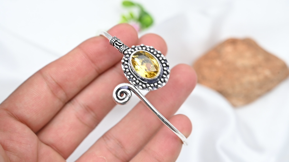 Shape:Same As PictureCountry of Origin:IndiaColored Diamond Intensity:N/ASecondary Stone:N/ANumber of Gemstones:1Base Metal:Sterling SilverMetal Purity:925Total Carat Weight:10 carat and aboveChain Type:N/ASetting Style:BezelFeatures:AdjustableMain Stone Shape:OvalMain Stone Depth:N/AType:BangleDiamond Color Grade:N/ACountry/Region of Manufacture:IndiaTheme:Beauty, Bohemian, Ethnic, Halloween, LoveColor:SilverMain Stone:CitrineMetal:Sterling SilverCertification:N/AOccasion:Anniversary, Birthday, Christmas, Engagement, Mother's Day, Valentine's Day, WeddingMaterial:GemstoneItem Length:AdjustableMain Stone Width:N/ANumber of Diamonds:N/ACut Grade:ExcellentBrand:HandmadeCharm Type:Same As PictureMain Stone Color:YellowStyle:CuffMain Stone Length:N/ACollection:HandmadeMain Stone Creation:Lab-CreatedClosure:AdjustableDiamond Clarity Grade:N/AMain Stone Treatment:Not Enhanced