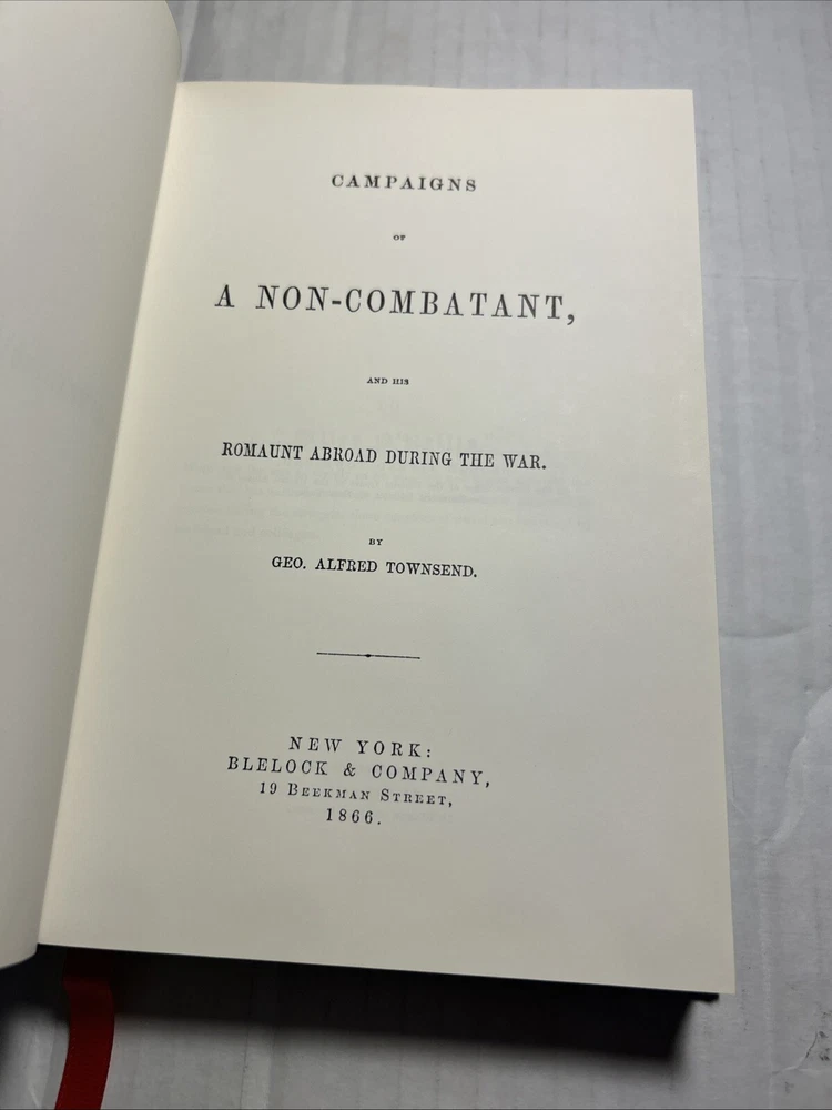 Campaigns of a non-combative. By: George Alfred Townsend. Collectors library of the Civil War.. book was printed in 1982 from the 1866 edition. This volume is bound by leather. Book is an excellent condition if it was read, I would say maybe once, but I don’t even think it was picked up at all. Book is an excellent like new condition. Will ship out within two business days