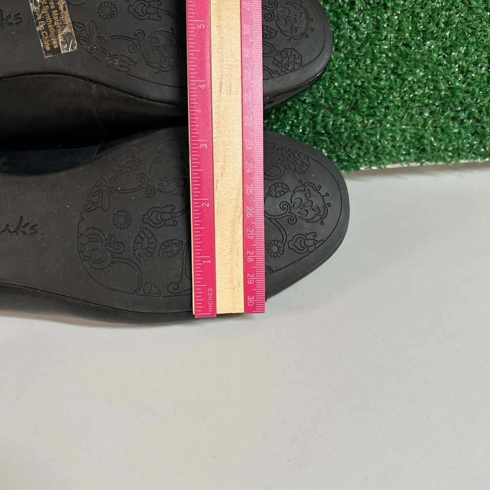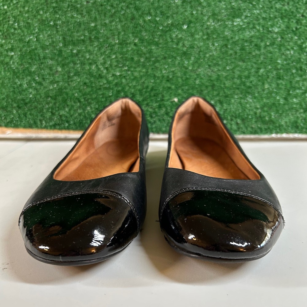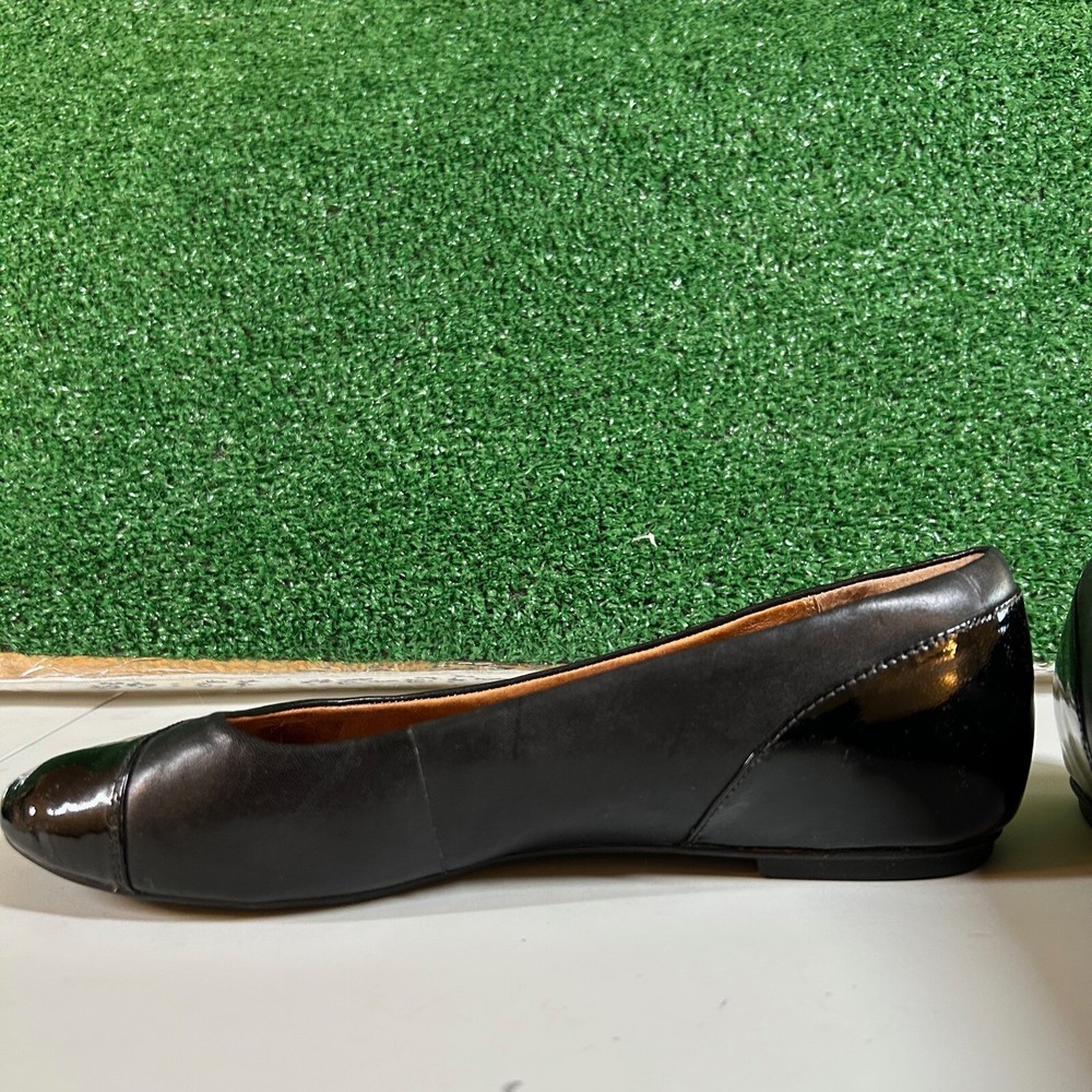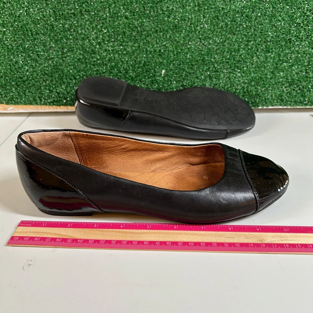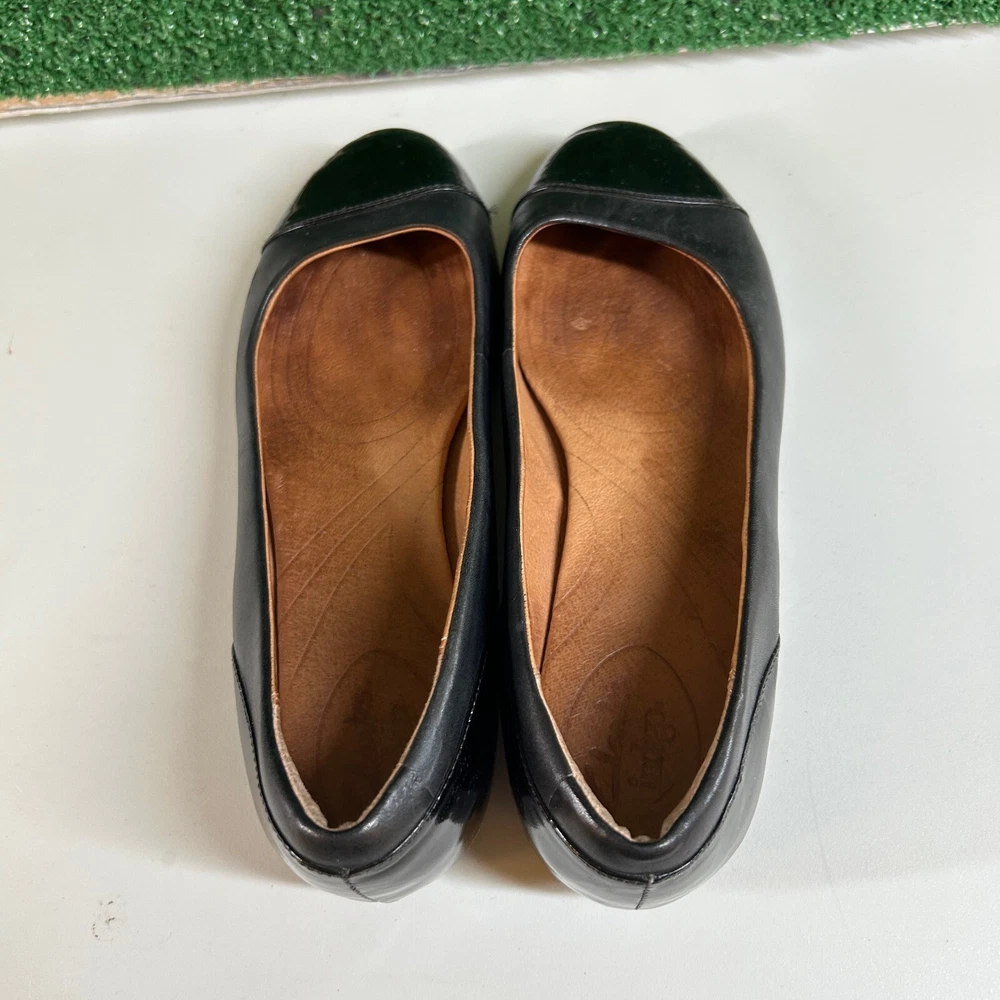Shoes in excellent condition! EXACT MEASUREMENTS IN PHOTOS FOR SIZING!! PLEASE SEE ALL PHOTOS!! No rips, stains or tears! May have some wear and discolor on outside of shoes! Style: Ballet Color: Black Department: Women Upper Material: Leather Features: Comfort, Cushioned, Cap Toe, Slip-On Occasion: Casual, Workwear, Business Insole Material: Synthetic Lining Material: Synthetic Outsole Material: Synthetic Model: Cap Toe Ballet Flat Type: Flat Keywords: ballet flats, leather flats, cap toe shoes, black flats, comfortable shoes, womens shoes, casual flats, dress flats, slip on shoes, everyday wear, classic style, work shoes, office shoes, leather ballet flats