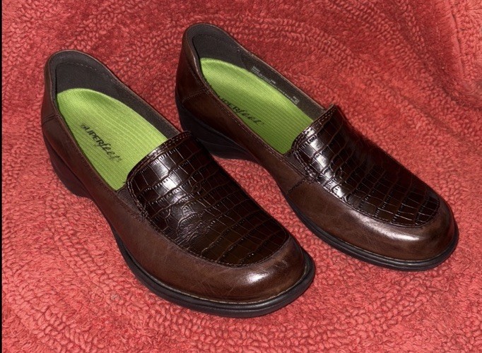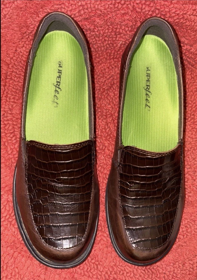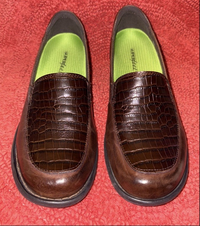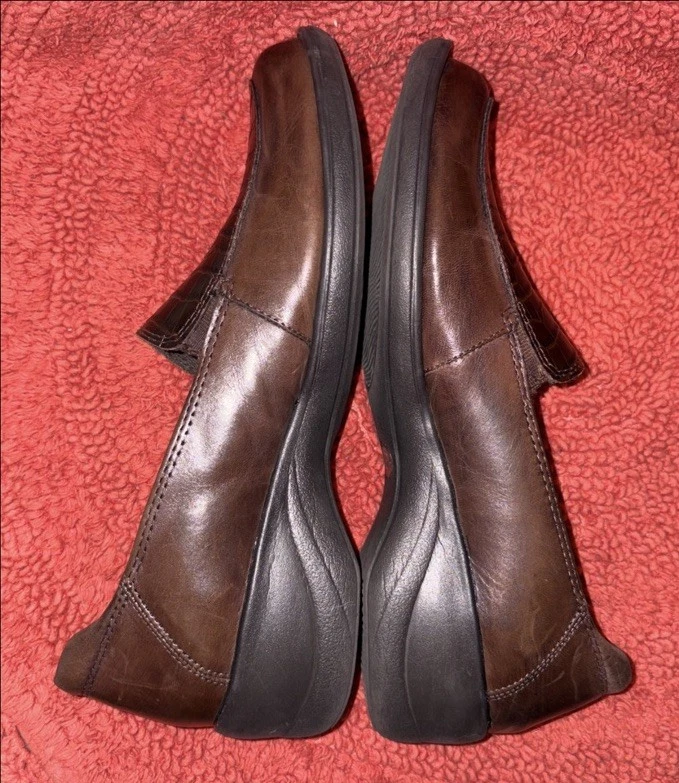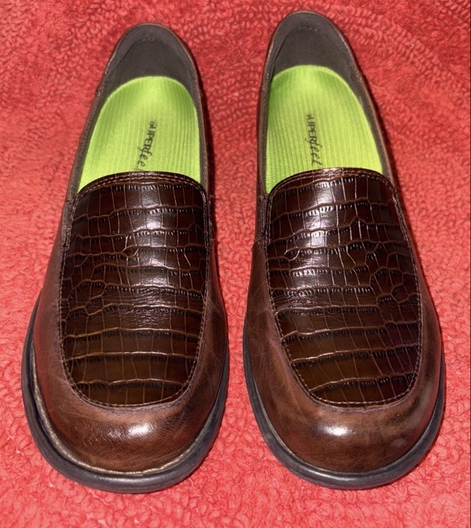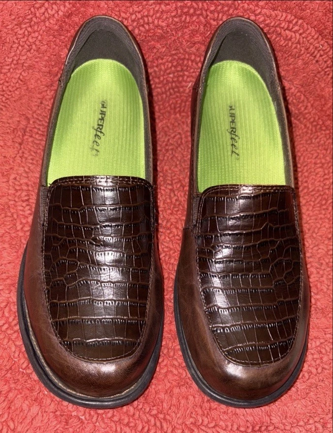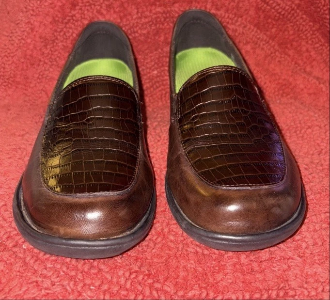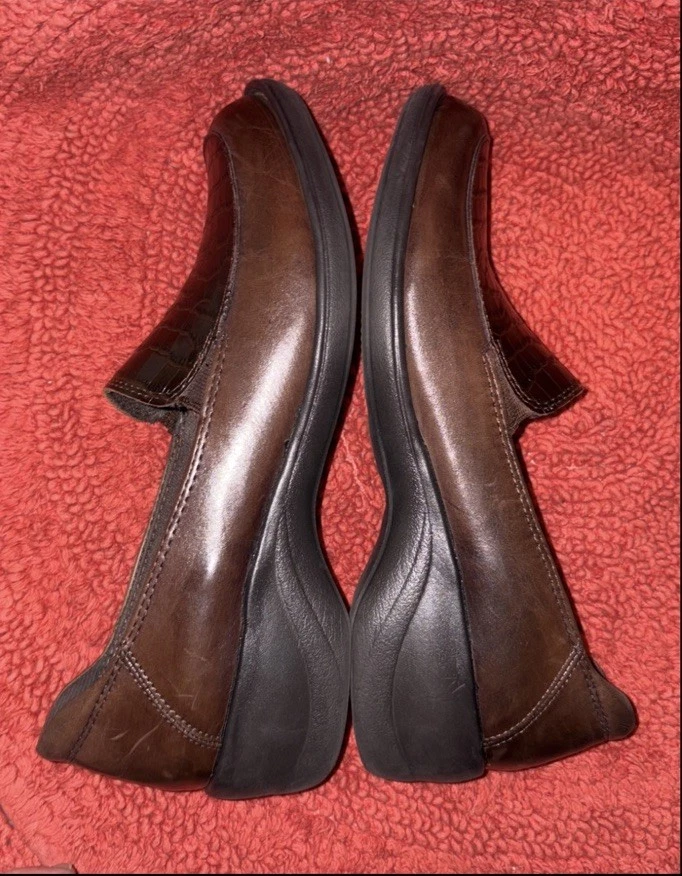 The loafers in the pictures are the exact pair the buyer will receive. They are in excellent preowned condition as you will see in pictures. Product Description: Clarks Artisan Womens Brown Leather Alligator Print Vamp Slip On Loafers Sz 10 M Product Information: Clarks Artisan women's brown leather loafers with a unique alligator print vamp design is a classy design for all day wear. These comfortable slip-on loafers feature a round toe shape and a cushioned Superfeet insole for added comfort. With a rubber outsole for slip resistance, they are suitable for various occasions including travel, parties, casual wear, work, and business meetings. Made with high-quality leather and Superfeet insoles, these size 10 M loafers are a stylish and versatile addition to any woman's shoe collection.