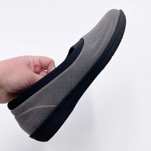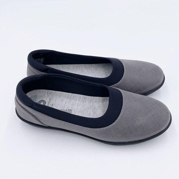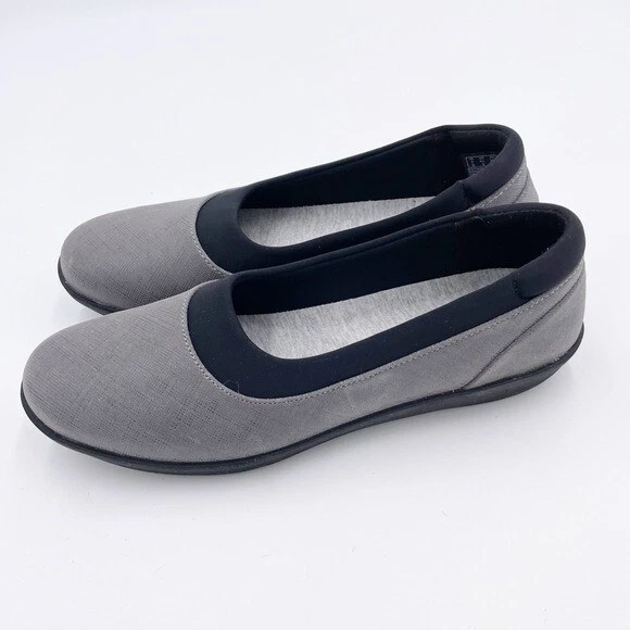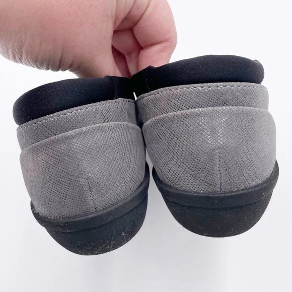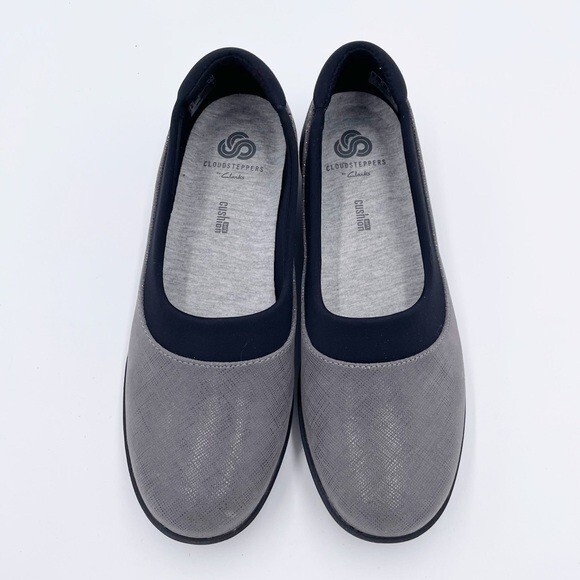 Cloudsteppers by Clarks Womens Ayla Pure Closed Toe Loafers Flats Grey with black Slip on styling Soft Cushion comfort insoles Comfort shoes Size 6.5 Excellent pre-owned condition