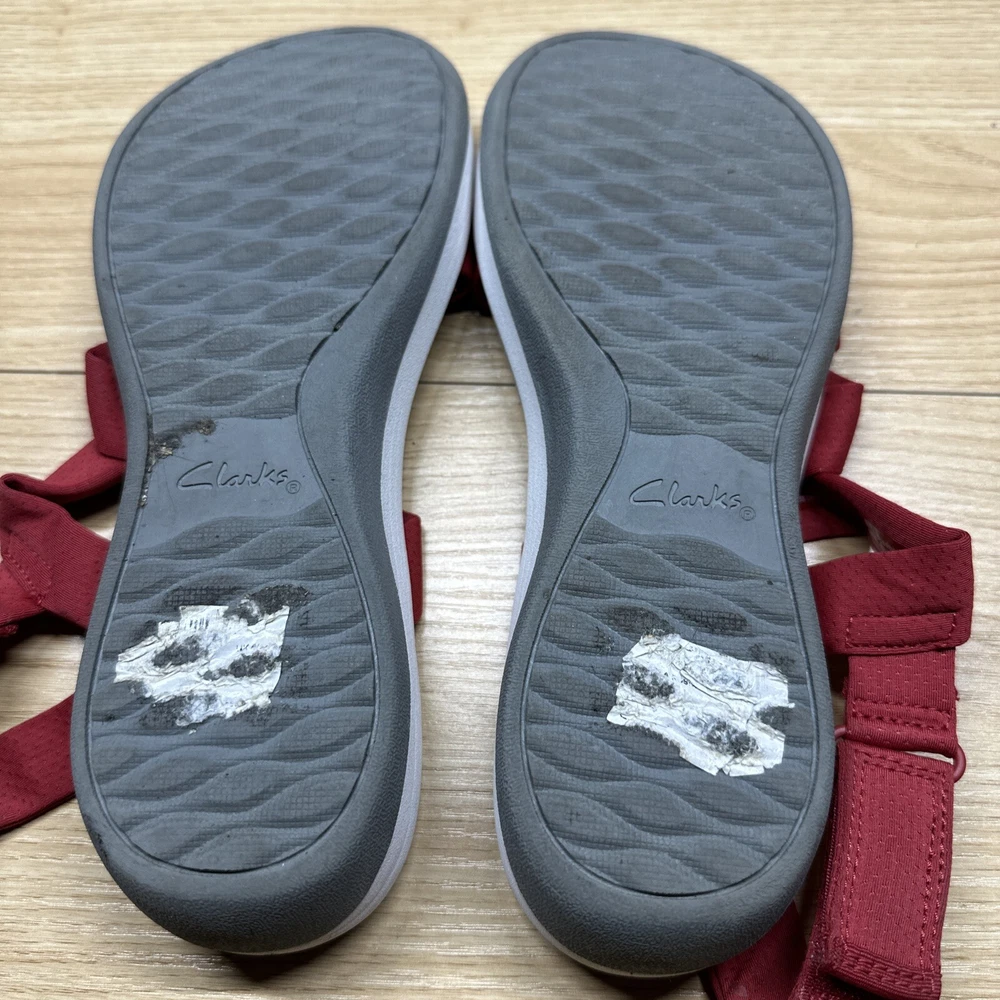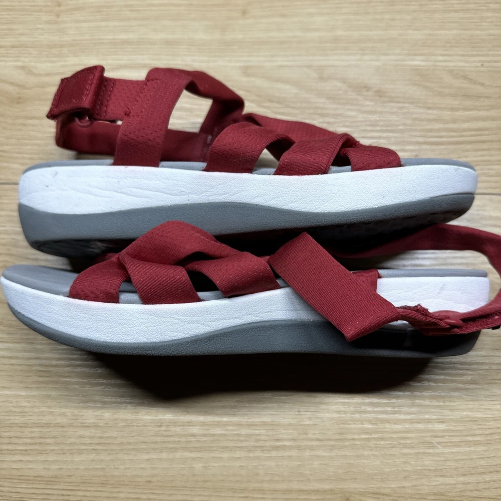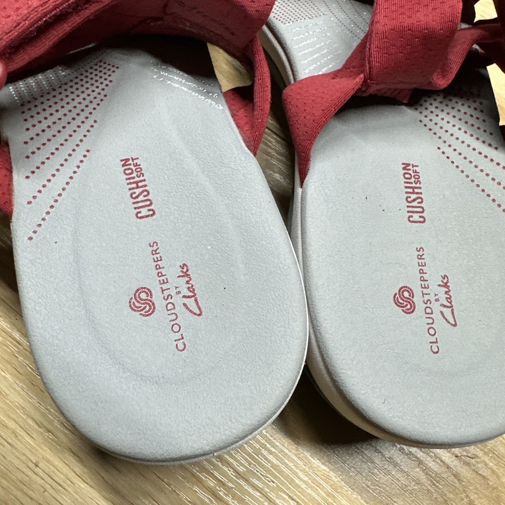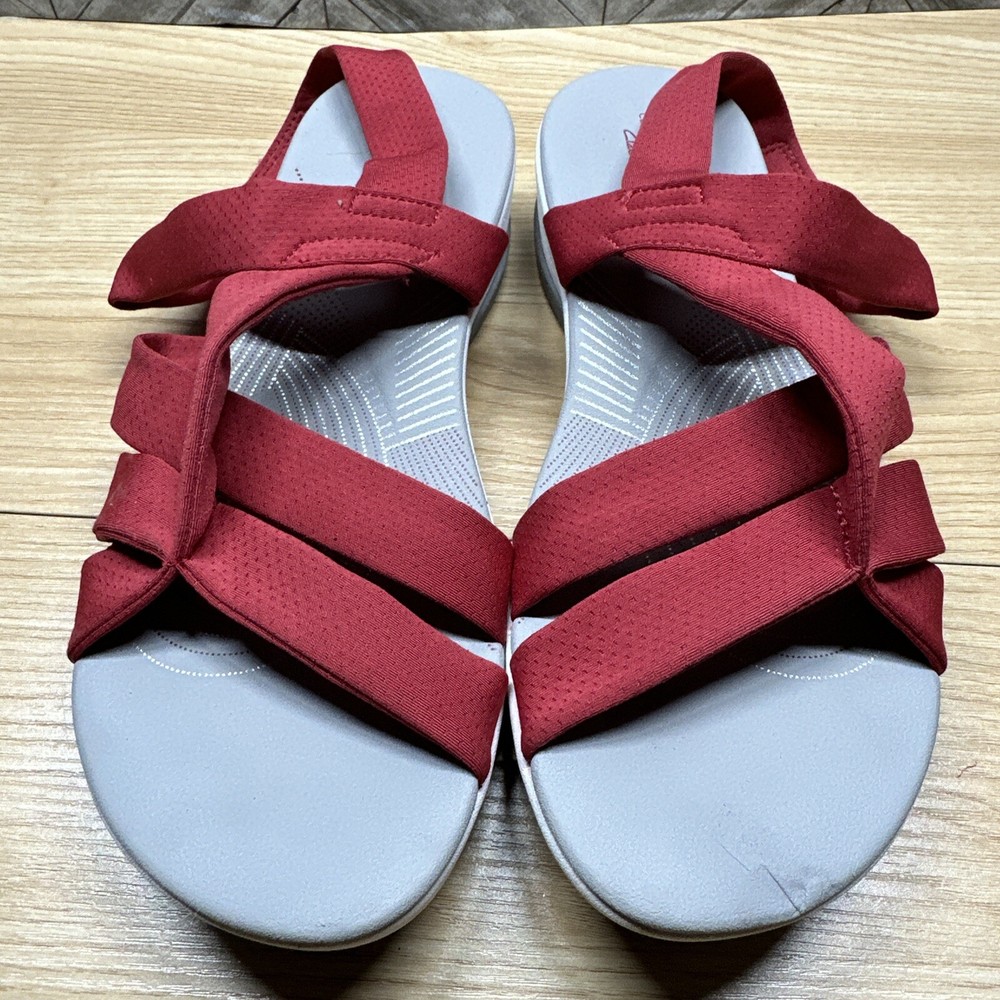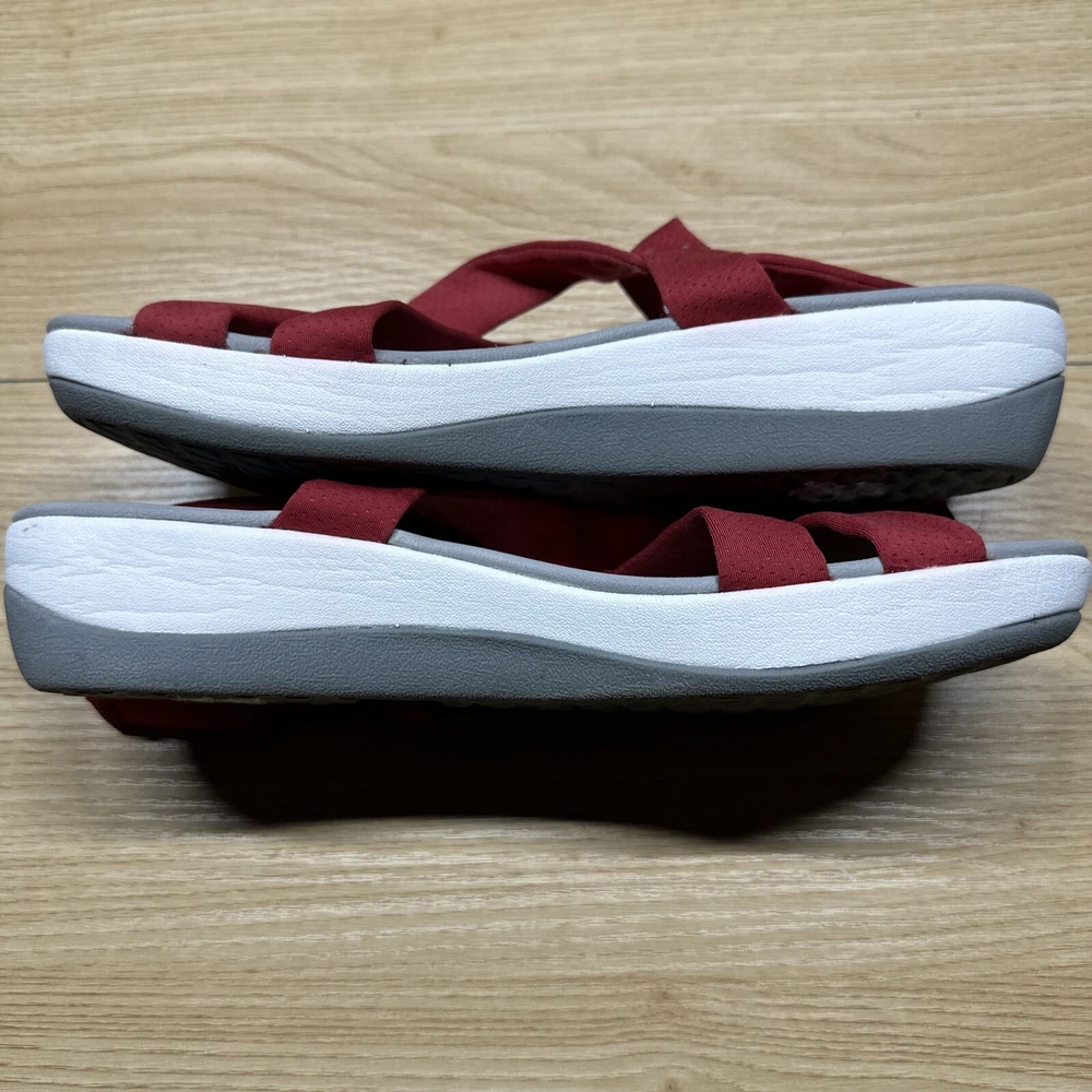 Clarks Cloudsteppers Womens 9 Strappy Sandals Red White Cushion Wedge Strap Preowned