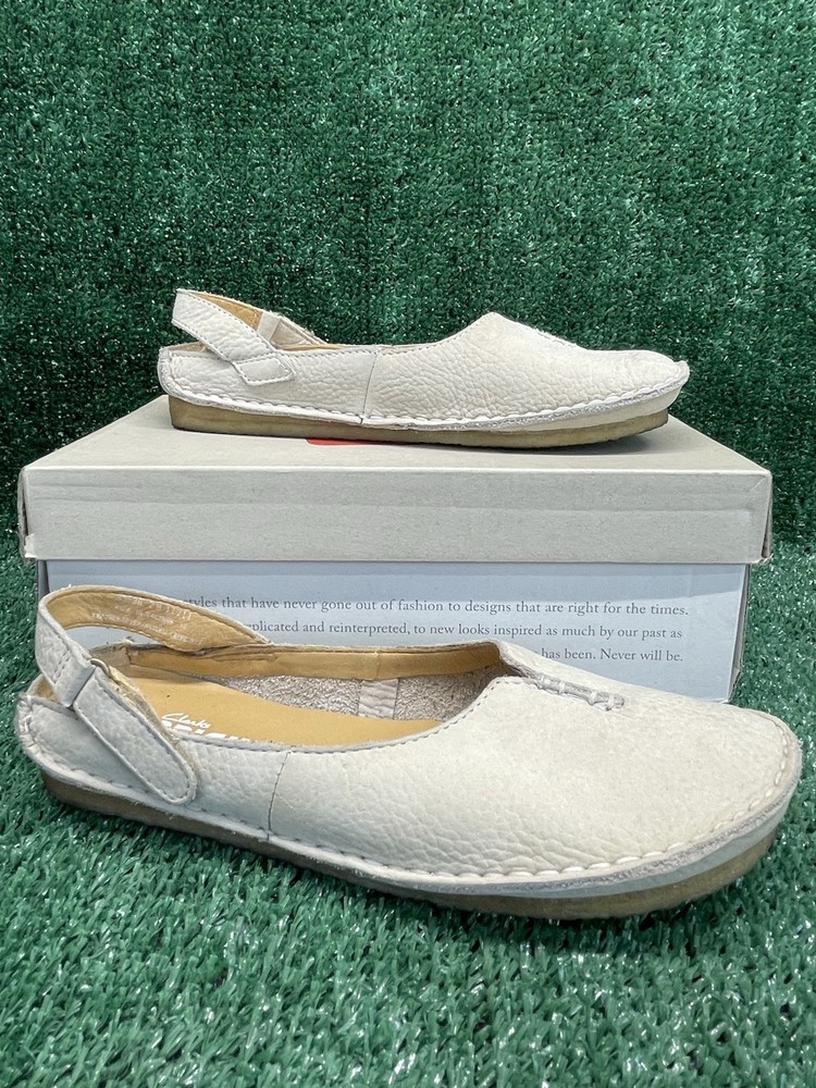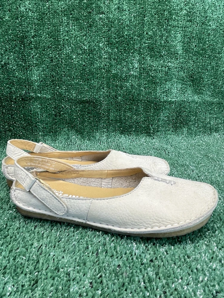 Clarks Originals Cream Nubuck Leather Backstrap Ballet Flats 33580 Women 7M VGC Item listed is in Good used Condition please see attached photos for more details In original box Moderate comfort Will ship USPS within 24/48 hours safely and efficiently