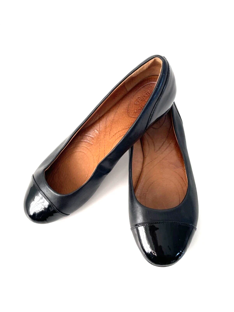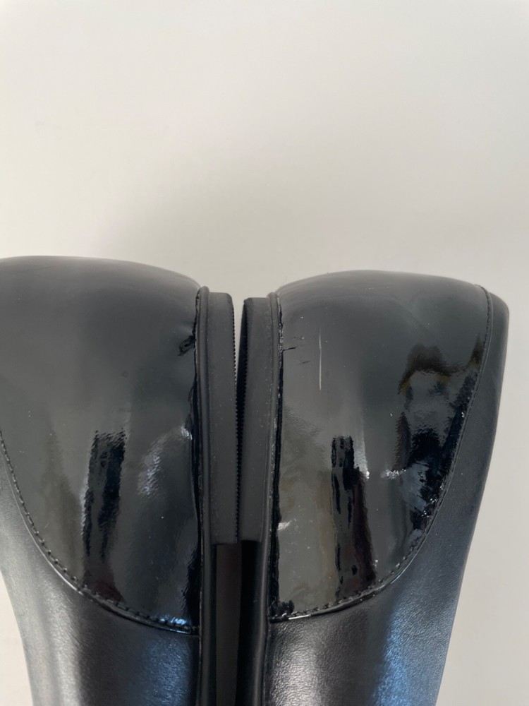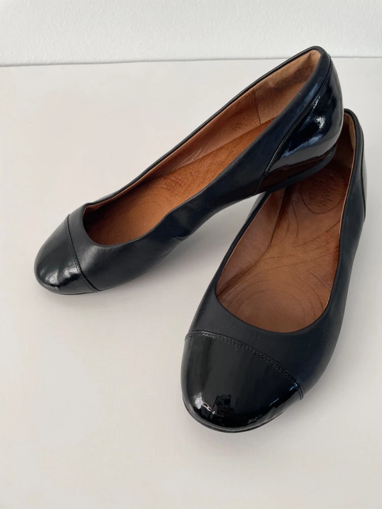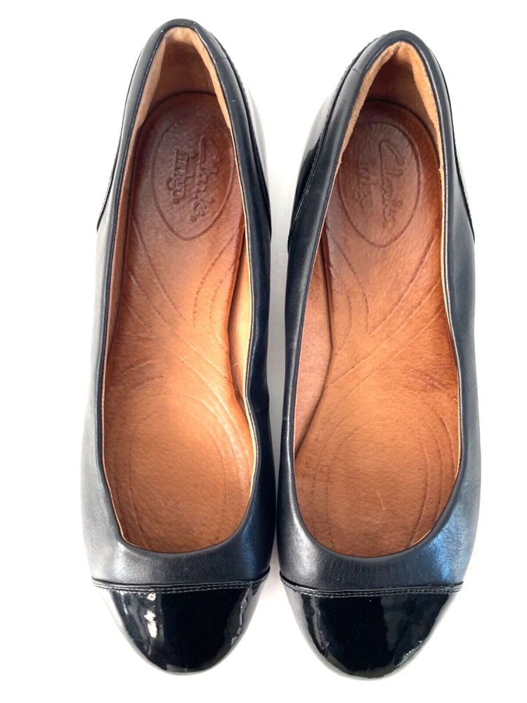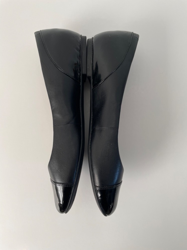 Clarks patent leather and leather combo black ballet flats size 9. Some spots are on the inside sides of the shoe.