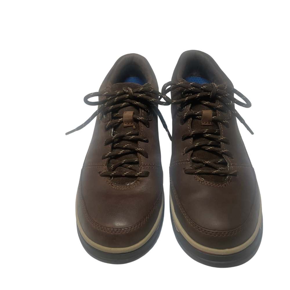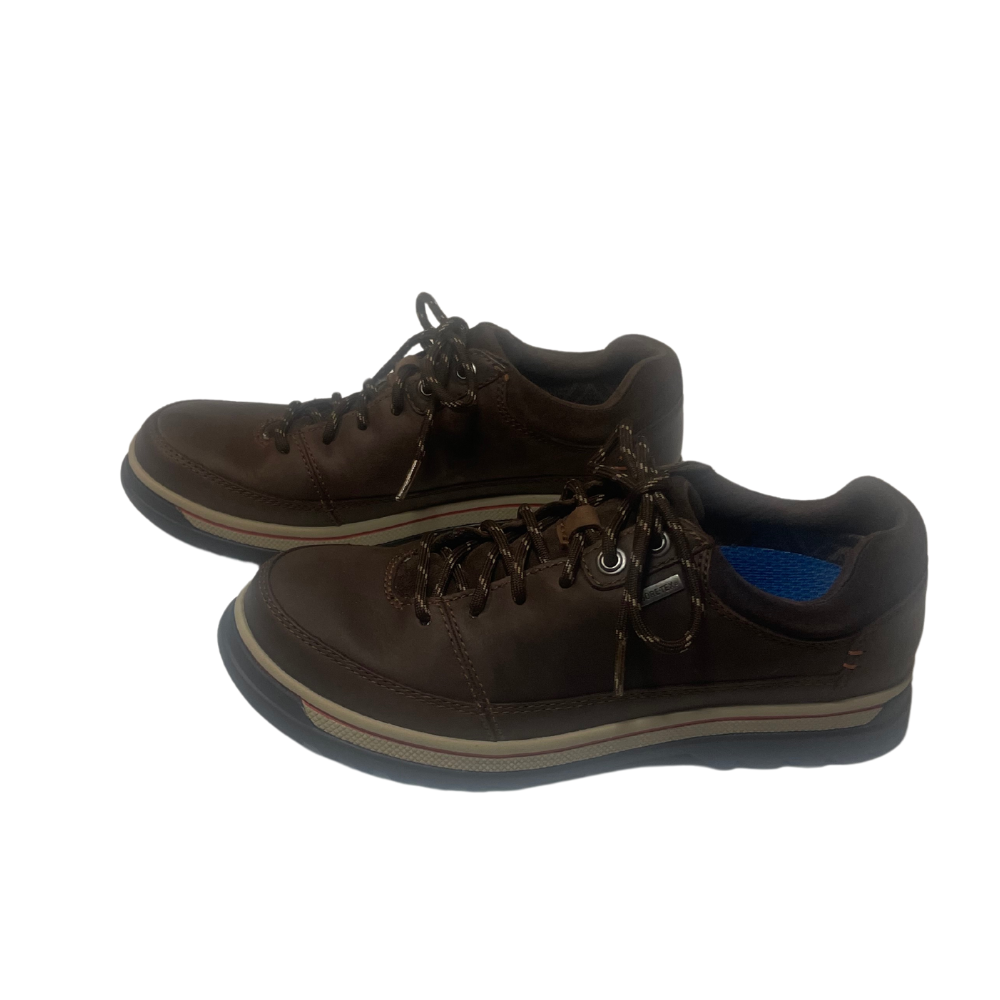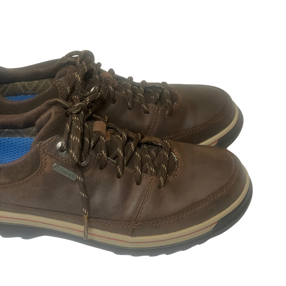 This pair of Clarks Ripway Path Gtx shoes is perfect for the casual, travel, and workwear occasions. The lace-up closure and rubber sole make them durable and comfortable to wear. It is a size a US size 7 and UK size 6. These shoes are a great addition to any wardrobe and are perfect for men who value comfort and style. Pre-owne, excellent condition, was not used. Insole was replaced with Sofsole, see last pic.