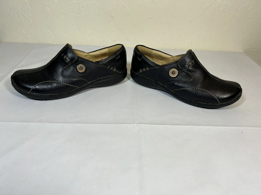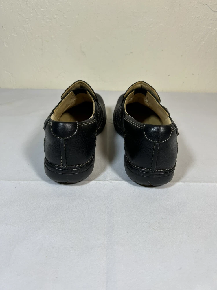 Clarks Un Loop Unstructured Loafers Womens Size 9.5M Black Leather Comfort Shoes.