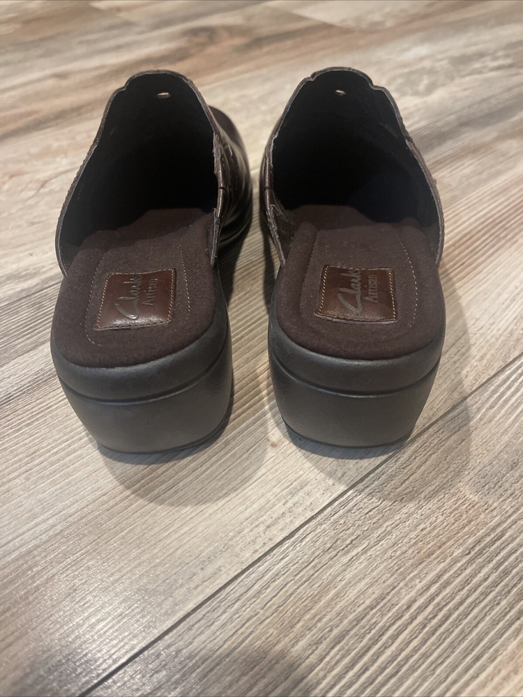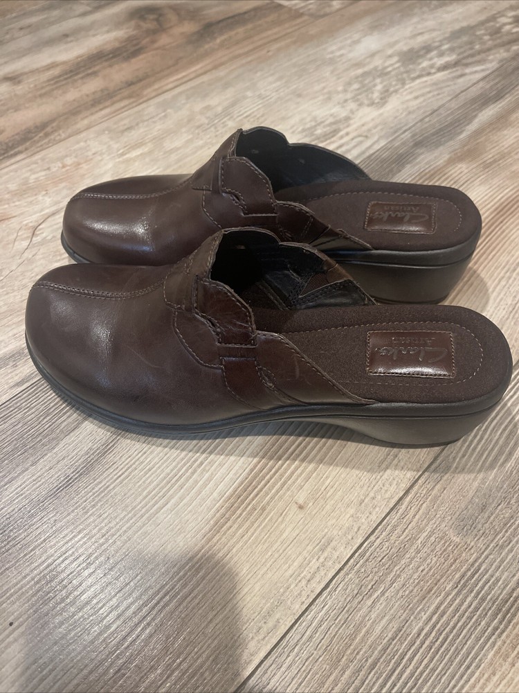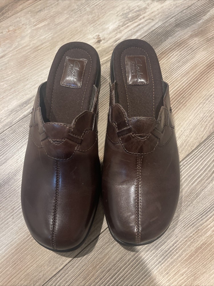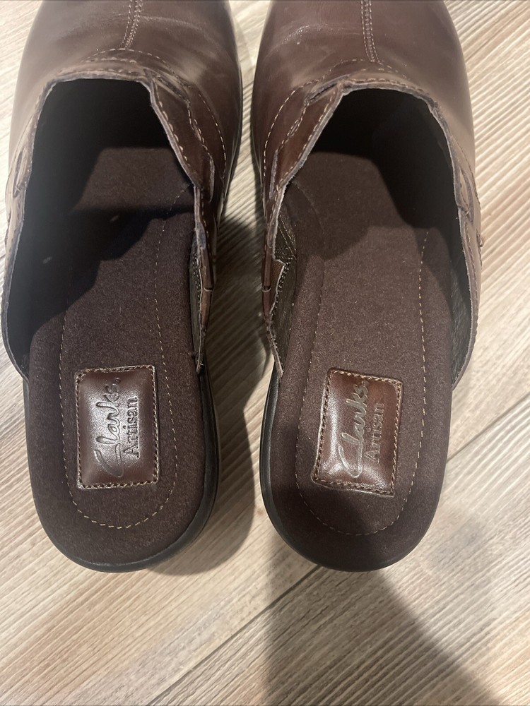 Clarks Artisan Leather Slip On Mule Clog Shoes Womens Size 8.5M Brown Classic. Condition is Pre-owned. Shipped with USPS Ground Advantage.
