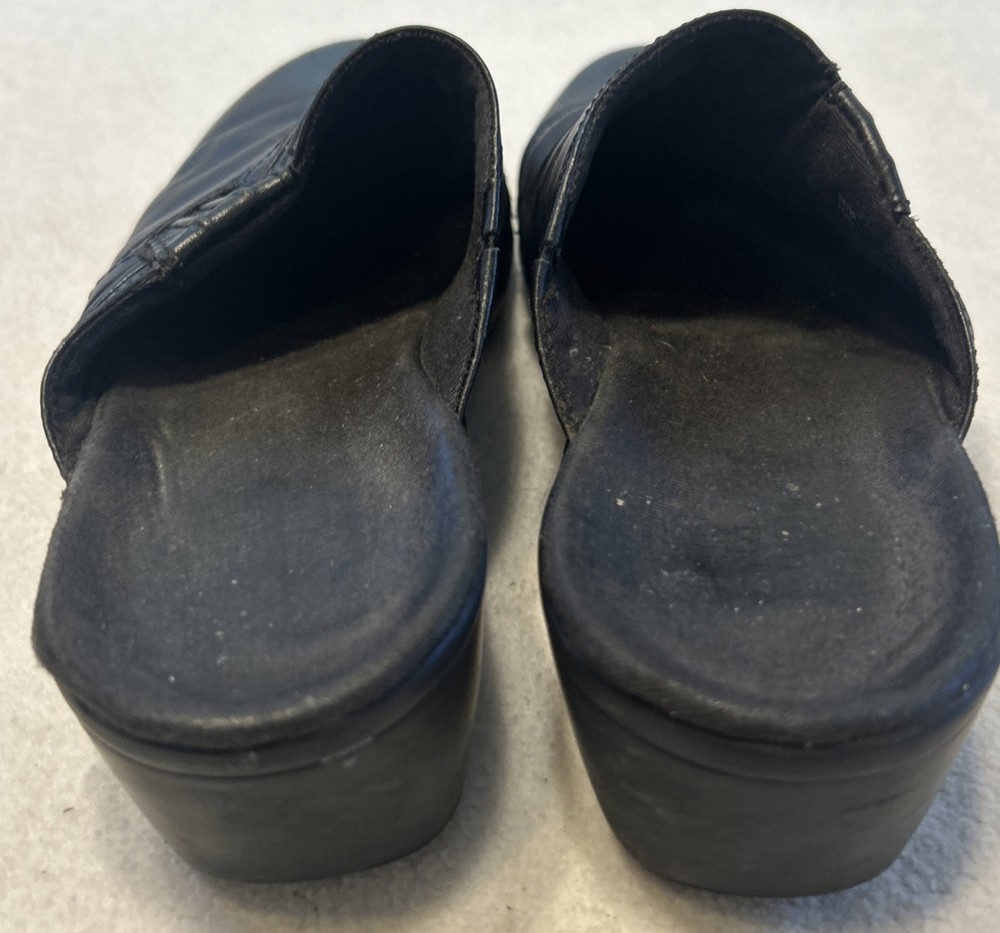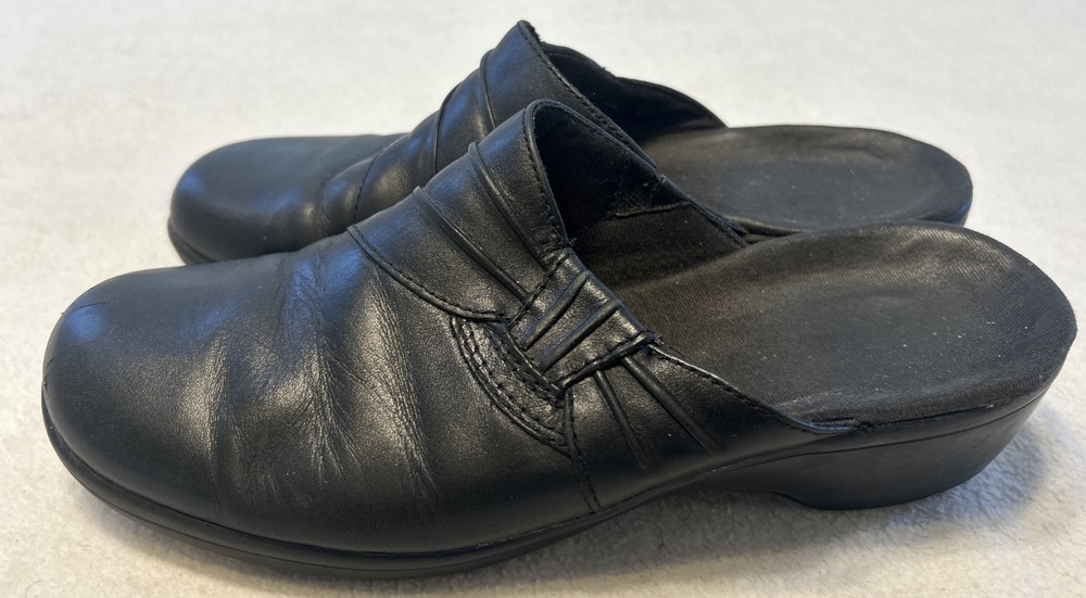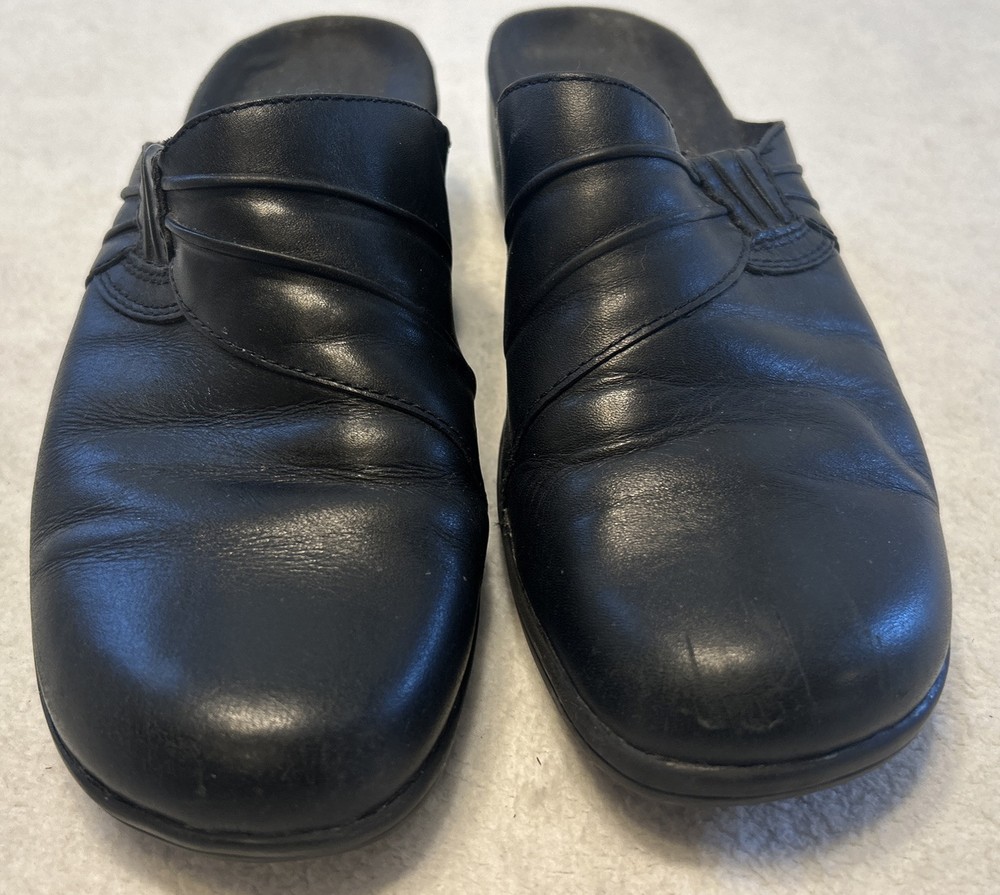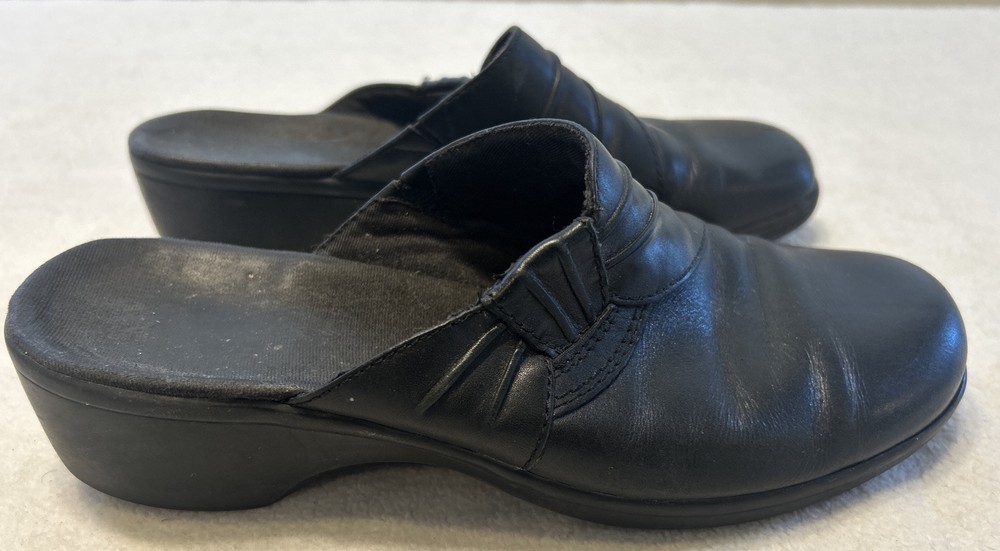 Clarks Women’s Shoes Size 7.5 M Black Mules Leather Slip On Clogs Wedge