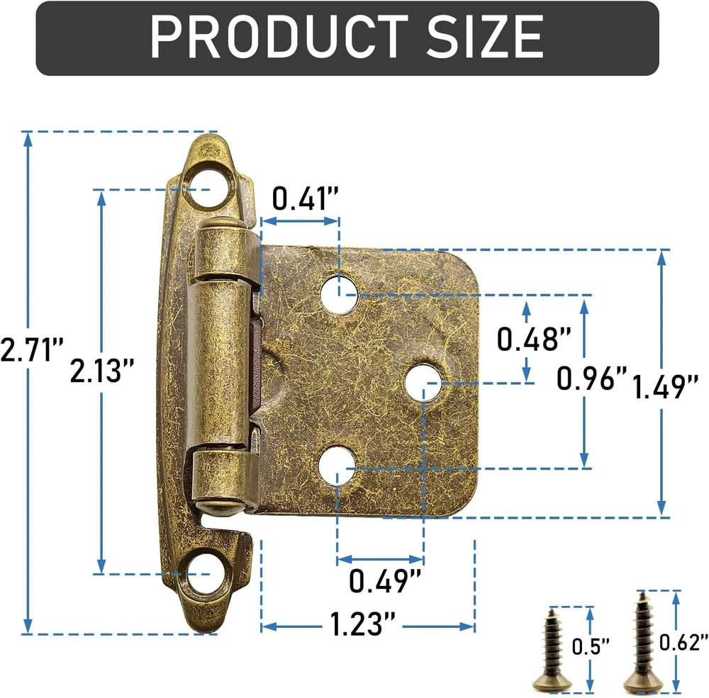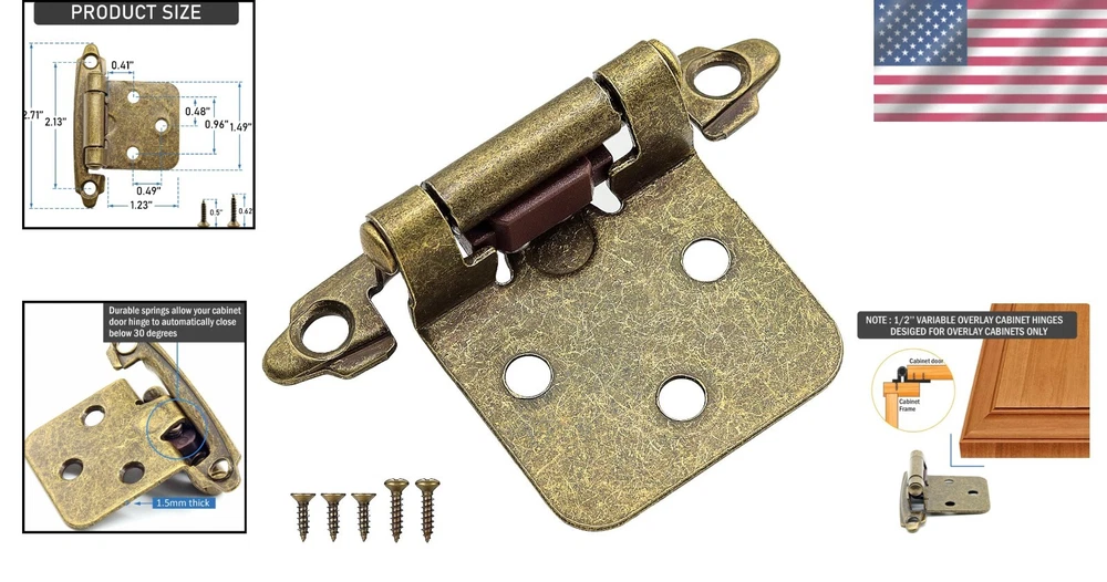 Classic 50 Pack Antique Brass Overlay Cabinet Hinges for Kitchen & Bathroom ‹ › ‹ › ‹ › ‹ › ‹ › ‹ › ‹ › ‹ › ‹ › Classic 50 Pack Antique Brass Overlay Cabinet Hinges Upgrade your kitchen and bathroom with our exquisite set of 50 Antique Brass Overlay Cabinet Hinges. Perfectly designed for a timeless look and outstanding functionality, these hinges are the ideal choice for enhancing your cabinetry. Product Features: Included: 25 pairs (50 pieces) of antique brass cabinet door hinges, each set individually packaged with 10 mounting screws for easy installation. Overlay Design: Specifically crafted for doors that "overlay" the frame, perfect for surface-mounted cabinets. Durable Quality: Each hinge is made from robust steel and features a brass finish, ensuring maximum durability and elegance. Self-Closing Mechanism: Enjoy automatic closure of your cabinet doors, functioning seamlessly up to 30 degrees. Easy Installation: Comes with newly strengthened 5/8 screws, ensuring a perfect fit and compatibility with power tools for simplified installation. Benefits: Elegant antique brass finish adds a touch of sophistication to your kitchen or bathroom. Designed for a long-lasting performance, resisting wear and tear from everyday use. Self-closing feature ensures a clean, polished look while reducing wear on cabinet edges. Ideal for classic American cabinetry, blending functionality and aesthetic appeal. Convenient packaging allows for organized storage and easy access during installation. Why Choose Our Antique Brass Overlay Cabinet Hinges? Are you looking to elevate the style and functionality of your cabinets? With our Classic Antique Brass Overlay Hinges, you not only enhance the visual charm of your cabinetry but also ensure top-notch performance. These hinges are built to endure the demands of any kitchen or bathroom, providing self-closing action and lasting durability. Make a lasting impression with beautifully crafted cabinet hinges that will stand the test of time. Order your 50 Pack of Antique Brass Overlay Cabinet Hinges today and transform your space with elegance! Shipping Free & Fast Shipping - We offer free shipping to most of the USA with a normal delivery time of 3-7 days. However, due to the current situation, additional delivery time (up to 3 weeks) may be required for some items. Alternative Carriers - We may use alternative carriers (e.g. USPS, FedEx, UPS, etc.) to ensure your package arrives safely and on time. Due to the use of multiple carriers, we are unable to provide a tracking number automatically. Handling Time - Orders are processed and shipped within 1-2 business days of receiving cleared payment. Shipping Restrictions - Shipping to Alaska, Hawaii, Puerto Rico, Guam, and other US territories may incur shipping charges or delivery restrictions. Please contact us before ordering, or your order can be refunded/cancelled. State Restrictions - There may be restrictions based on your state of purchase. For example, certain items may not be shipped to California due to state regulations. Contact for Tracking Updates - If you require tracking updates or have any concerns about the delivery of your order, please feel free to contact us, and we will be happy to assist you. Return Please see our eBay Return Policy. Thank you. Payment We accept all major credit cards, PayPal, and Apple Pay for your convenience. Your payment information is secure and encrypted to ensure a safe and seamless transaction. Please complete your payment within 3 days of purchase to avoid any delays in shipping. Feedback Your feedback is extremely important to us. We strive to provide the best products and customer service possible. If you are satisfied with your purchase, please take a moment to leave us a positive review. If you have any concerns or issues with your order, please contact us before leaving negative feedback. We are committed to resolving any problems and ensuring your satisfaction. Contact Us If you have any questions or concerns, please feel free to reach out to our customer support team. You can contact us through the eBay messaging system. We are available Monday to Friday, 9:00 am to 5:00 pm EST, and we will do our best to respond to your inquiry within 24 hours. Thank you for supporting our small family business! UPC: Not Set Unit Quantity: 50 Material: Brass,Steel Suitable For: Bi-Fold Door,Room/Pass Door,Kitchen,Bathroom,Office,Home Features: Self Closing,Durable,Strong,Long-lasting,Reinforced Strength,Easy Installation Brand: Unbranded Type: Overlay Color: Antique Brass Finish: Brass Item Width: Not Set Item Height: Not Set MPN: Not Set Number in Pack: 50 Country/Region of Manufacture: Not Set Style: Classic Item Depth: 4.49 in Manufacturer Warranty: Not Set Unit Type: lb Fixings Supplied: Not Set