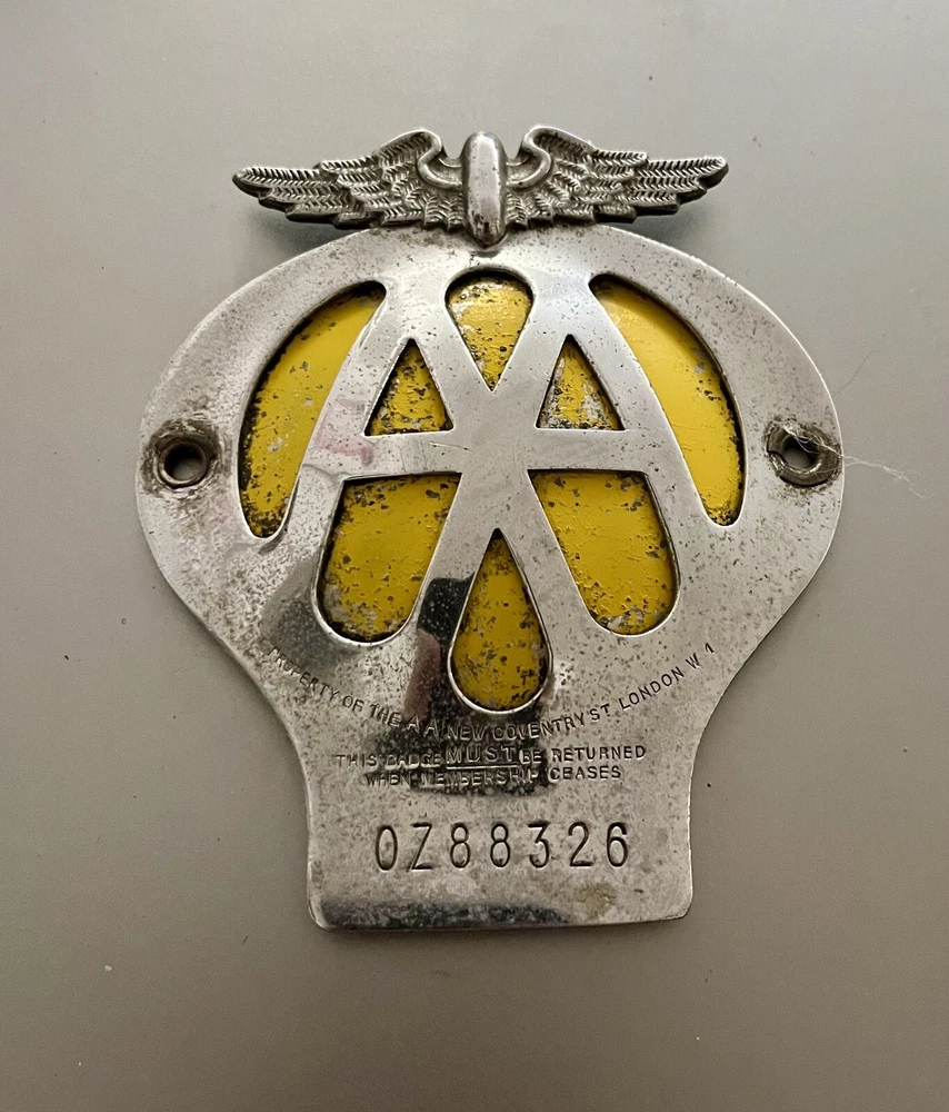 Classic Car AA Badge Grill Bonnet Mini Jaguar Austin Morris MG Ford. Used original condition. Needs a good clean. Will send uk and internationally tracked. Have a few available please see my other items.