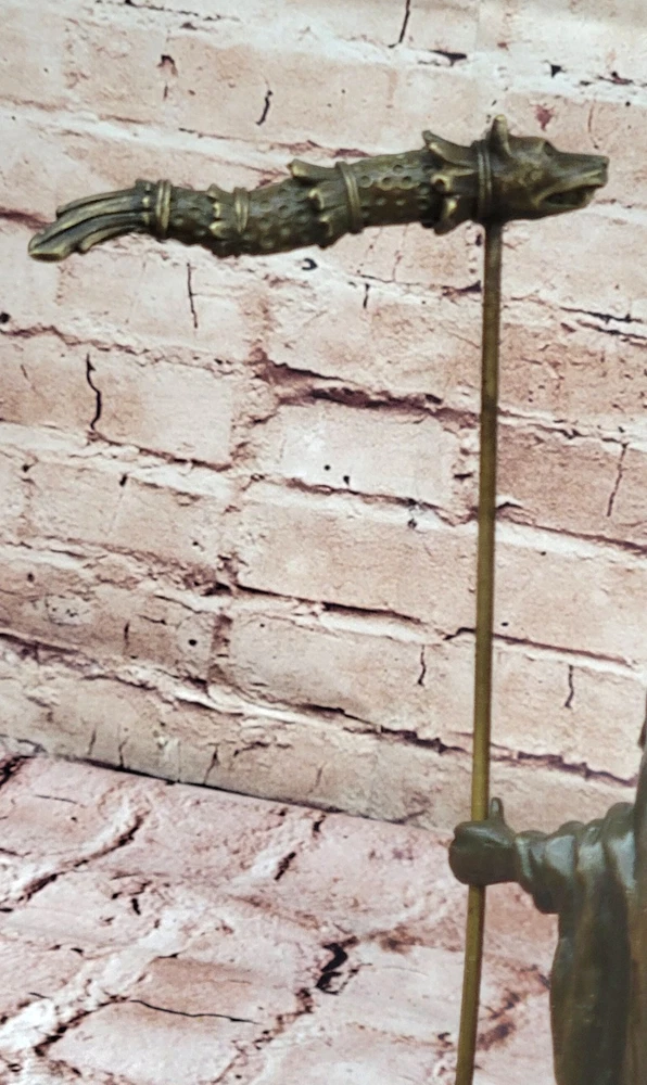 Most Classic and well known versions of Greek mythology, Cronus or Kronos Gift Most Classic and well known versions of Greek mythology, Cronus or Kronos Gift Condition : This sculpture is in perfect condition Bronze Dimensions with Marble Base: Height 11.5" X Width 6 1/2" Marble Dimensions:4 1/2" X 4" Height without base10" Weight:7 LBS Inventory:17YDZ0023871 Greek God Saturn Bronze Sculpture: A Mythological Masterpiece This extraordinary bronze sculpture captures the essence of the Greek God Saturn, also known as Cronus, in breathtaking detail. Saturn is depicted holding his symbolic scythe, representing his dominion over time and harvest. The artist has masterfully crafted every aspect of the figure, from the strong, defined muscles to the intricate folds of his attire. This mythological figure stands tall, exuding power, wisdom, and a timeless presence that captivates any viewer. Lost-Wax Casting: A Timeless Technique This sculpture is a testament to the enduring art of lost-wax casting, a method that has been used for centuries to create intricate bronze works. The attention to detail and craftsmanship in this piece is unparalleled, with the rich brown patina finish enhancing the natural beauty of the bronze. This ancient technique allows for an extraordinary level of detail, preserving the artist’s vision in a way that ensures the sculpture’s longevity and high quality. The two-tone patina highlights the artistry, giving the figure both depth and warmth. An Elegant Addition to Any Collection Mounted on a black marble base, this bronze sculpture is not only a tribute to Greek mythology but also an elegant addition to any art collection. The smooth marble contrasts beautifully with the rough texture of the bronze, giving the piece a sophisticated finish. Signed by artist B.C. Zhang, this sculpture is a work of fine art that bridges classical mythology with modern craftsmanship, making it a must-have for collectors and admirers of fine bronze works. Greek God Saturn Holding Scythe Bronze Sculpture Hot Cast Figurine Figure Video will open in a new window Using the eBay App? Paste link into a browser window: [isdntekvideo] Shipping Terms : Most of our items are shipped via USPS (United States Postal Service) mail or UPS. Most orders are shipped within 24-48 hours of purchase. Please be aware that not all items are available for USPS shipping due to size and weight. We do ship to Hawaii, Alaska, Canada, Puerto Rico, APO/AE, and U.S. Virgin Islands, however, an additional charge may be required. Please contact us before making any purchases in these areas. For Non-USA customers, you may be responsible for all duty, tax, brokerage fees that may be due upon delivery (shipping costs cover freight charges only). We also ship internationally. Please refer to the "Shipping and Handling" chart for the rates for each area. Payment : We accept just about any form of payment. PayPal, Master Card, Visa or American Express credit cards. Money orders, cashiers checks, and even personal or business checks. For governmental institutions, we will also accept a purchase order. Please understand that for personal or business checks we have to wait for the check to clear (usually 7 days) before shipping. Condition : New Detailed Hand Crafted Hot Cast Bronze Satisfaction Guaranteed. This is Stock Photo, Slight Color Variation!! Listing and template services provided by inkFrog
