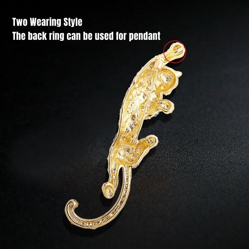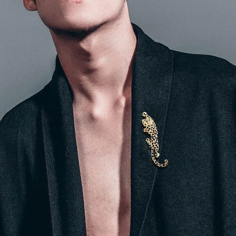 Classic Men Fashion Leopard Crystal Badges Brooches Vintage Accessories Jewelry