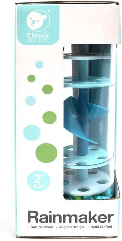 Further Details Title: Classic World Rainmaker - Rainmaker Baby Toy - Baby Sensory Toys - Baby Learning and Development Toys - Auditory Instrument Toy - Baby Toys for 2+ Year Olds - Ideal Christmas Stocking Filler, Blue Green, Blue Condition: New Brand: Classic World Color: Green, Blue Material: Wood Type: Early Development & Activity Toys Number of Items: 1 Item Weight: 0.14 Kilogramsg Theme: Fantasy Description: PRODUKTBESCHREIBUNGEN Schütteln, drehen und rollen Sie diesen blauen Regenmacher von Classic World. Sie können sehen, wie die Perlen von oben nach unten fallen und ein schönes Regentropfengeräusch erzeugen. Holzspielzeug von Classic World unterstützt solch fantasievolles Spielen. Wie Einstein sagte: „Phantasie ist alles. Sie ist die Vorschau auf die kommenden Attraktionen des Lebens. Fantasie ist wichtiger als Wissen.“ Die Spielzeuge von Classic World werden ohne schädliche Behandlungen in ihren Materialien und bei der Herstellung hergestellt und laden zu einer natürlichen Einführung in einige der Wunder der neuen Welt ein. Ein beruhigender Kontakt mit massivem und nachhaltigem Holz, nichts anderes fühlt sich so an; alle verschiedenen Farben und Konfigurationen regen die grenzenlose Fantasie Ihres Kindes an. Viel Spaß beim Spielen, viel Spaß beim Lernen. Dimensions: 14,5 x 7 x 4,5 cm; 140 Gramm Item Length: 145mm Item Width: 70mm Item Height: 45mm MPN: 40528 IMPROVES MOTOR SKILLS: Our baby rainmaker is an excellent tool for developing a musical ear and ability. It enhances coordination, observation, concentration, and fine motor skills. This educational toy promotes sensory exploration and helps toddlers improve their dexterity and hand-eye coordination, making it a valuable addition to any collection of developmental toys. VIBRANT SOUNDS: The rhythm of the cascading beads inside the rainmaker baby toy is controlled by the pace at which your child twists the rattle. The vibrant beads within the tube create a sound that mimics rain, providing a sensory experience that captivates and delights. This sensory toy for toddlers offers a unique way to explore sounds and rhythms through play. FULL OF ENTERTAINMENT: The baby rattle is filled with multiple beads and various propeller spinners that produce different sounds when shaken, twirled, or rolled. This sensory toy offers a dynamic play experience that stimulates auditory and visual senses. It's a perfect toddler learning toy that encourages creative play and keeps children engaged for hours. CLASSIC WORLD TOYS: At Classic World Toys, we aim to bring children closer to nature and inspire their imaginations through play. Our rainmaker baby toy is designed to provide wonder and joy, fostering exploration and learning. This educational gift for kids is ideal for sensory play activities, making it a thoughtful and fun toy that supports early childhood development and learning. EASY GRIP: Our rainmaker baby toy is designed for small hands, with dimensions of 6.5 cm wide and 16 cm long. The sturdy wooden handle ensures durability and safety, making it the ideal early learning toy for discovering colors, noises, and movement. This sensory toy is engaging and entertaining for your child, offering endless fun without the worry of it breaking. Missing Information? Please contact us if any details are missing and where possible we will add the information to our listing.