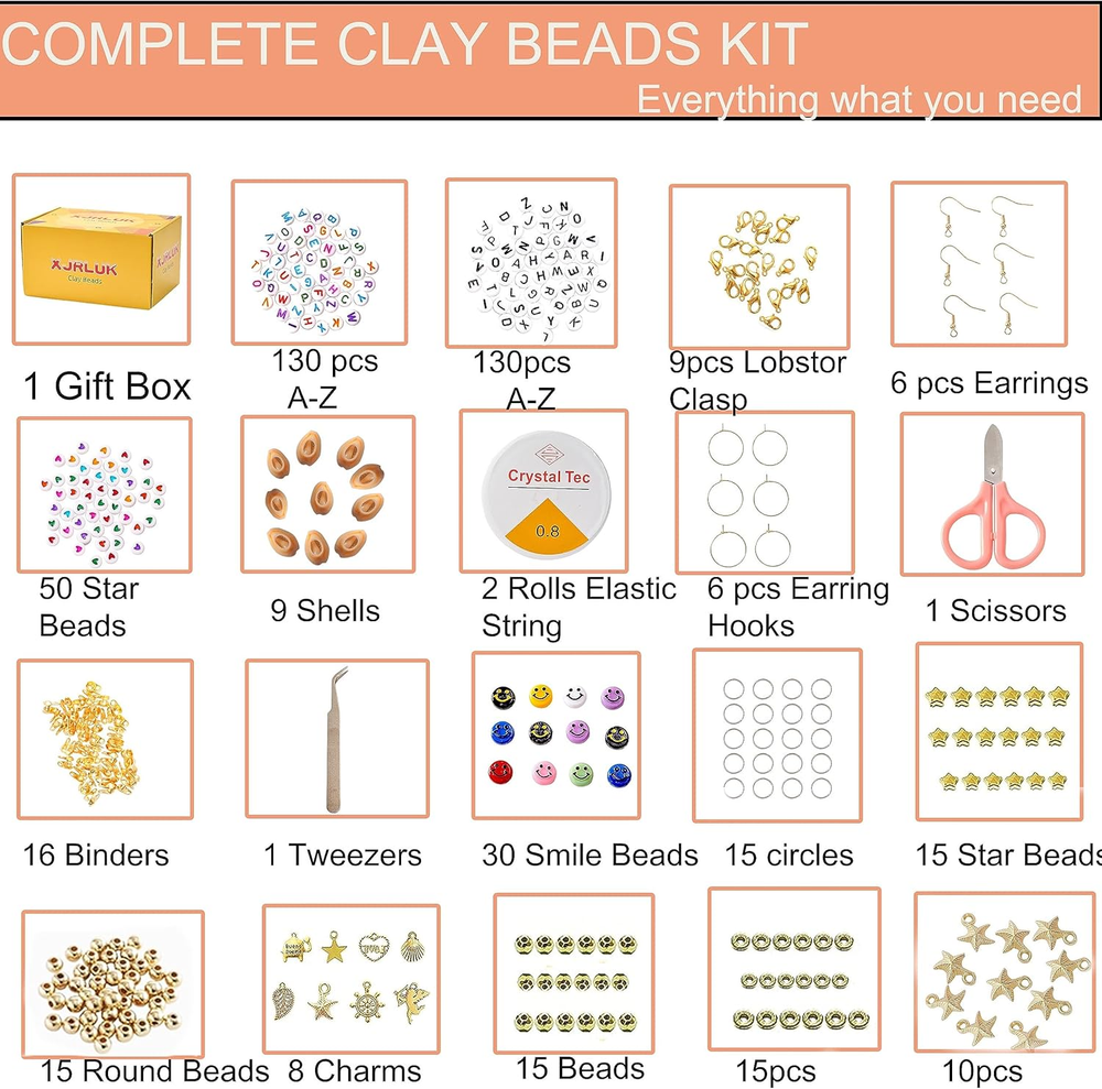 Store New Arrivals Add to Favorite View Feedback Contact Fast deliveries to the customer's home Quality customer service John Make the customers happy! Clay Beads Bracelet Making Kit, 6 Boxes 20000+ PCS 144 Colors Polymer Flat HEISHI Beads Kit for Jewelry Making, Crafts Gift for Christmas Party Gift Craft Kit Description [ Perfect Bracelet Making Kit ] All you need included, 6 boxes clay beads,letter beads,hear beads,smile beads,charms, shells,scissors,elastic string..ect. This complete expansive jewelry making kits is filled with endless possibilities to be imaginative,to meet all your needs for bracelet&jewelry making. [ Rich Colors Clay Beads Kit ] 144 different popular colors, can be made over 200 bracelets and necklaces.arranged in gradient rainbow shades,the rich color selection far exceeds other productions on the market to meet any color needs of yours,each color is in a small compartment,which is easy to access and will not be messed up, and you can easily find it according to your needs. [ High quality and safety ] Beads are made of polymer clay, a type of PVC material.Eco-friendly,non-toxic, strong plasticity, and durability. The diameter of clay Flatbeads is 6mm with a 2mm hole and thickness is 1mm. The clay beads for bracelets are lightweight, not easy to fade, comfortable to wear and waterproof when you wear it at the beach or pool. All materials provided are completely safe and kid-friendly for ages 4+. [ Ideal Gift - Giving ] The Clay Beads kit is a perfect gift for 4-12 years old Girls and Boys birthday or Christmas.Polymer clay beads bracelet making kit will better help children learn to organize and package their stuff, and improve children's creativity and focus.HEISHI beads is also a great gadget to kill time for adults and the elderly. [ our Promise ] Customer purchase experience is very important to us. If you have any problem with ouritem please feel free to contact us. We promise to give you a satisfactory solution within 24 hours. 【Attention】: Please use under the supervision of an adult, recommend for 4+ years old. Product Description XJRLUK Clay Beads Bracelet Making Kit CLAY BEADS FOR BRACELET MAKING KIT This all-in-one kit is perfect for DIY enthusiasts who love to create beautiful jewelry, bracelets, necklaces, earrings, anklets, key chains and more. Whether you're a beginner or an experienced crafter, you'll find everything you need to get started. WHAT WILL YOU GET? PACKAGE CONTAINS: 6boxes 20000pcs clay beads in 144 colors 260 letter beads (from A-Z) 50 heart beads+50 smile beads 2 roll elastic string 15 square beads+15 flat beads 15 golden stars+9 gold keychains 30 golden circles+15 gold buckles 6 earrings sets Item model number 0727 Item dimensions L x W x H 8.68 x 5.6 x 4.6 inches Age Range (Description) above 5 years old Color colored Material Pvc Country of Origin China Style Round Item Weight 2.72 pounds Theme Teen Model Name beads supply Seasons All Seasons Art Craft Kit Type Beads Number of Pieces 20000 Product Dimensions 8.68 x 5.6 x 4.6 inches Paint Type Decorative ABOUT US We offer the best prices around on high quality products. Our E-store includes media such as books, movies, music and games while offering electronics, toys, sporting apparel, clothing, tools, general home, garden items and more. SHIPPING We are always working hard to ensure your package arrives as soon as possible. Please understand that some factors like weather, high postal traffic, and the performance of shipping companies are outside of our control. We offer free shipping to the lower 48 states and ship within 2 business days of payment, usually sooner. We do not accept P.O. Boxes. Please provide a physical address. For shipping outside of the continental USA, we only use eBay's Global Shipping Program. The item is shipped to KY and then sent to the rest of the world. International customers are responsible for all duties and taxes. Continue to 'check out' to calculate costs for shipping the item to your country. Messages regarding eBay's Global Shipping Program MUST be directed at eBay EXCLUSIVELY. RETURNS We offer a 30-Day Return Policy on items in which you are not completely satisfied with. You have the option of a full-refund or an exchange of the item. No returns are available on items shipped outside of the USA PAYMENT We accept PayPal. CONTACT US This page content is yet to come Please ad us to your favorite seller and visit again later Thank You CUSTOMER SATISFACTION We try our very best to make sure every customer is completely satisfied. If there's a problem, message us! We're happy to help. WE ACCEPT