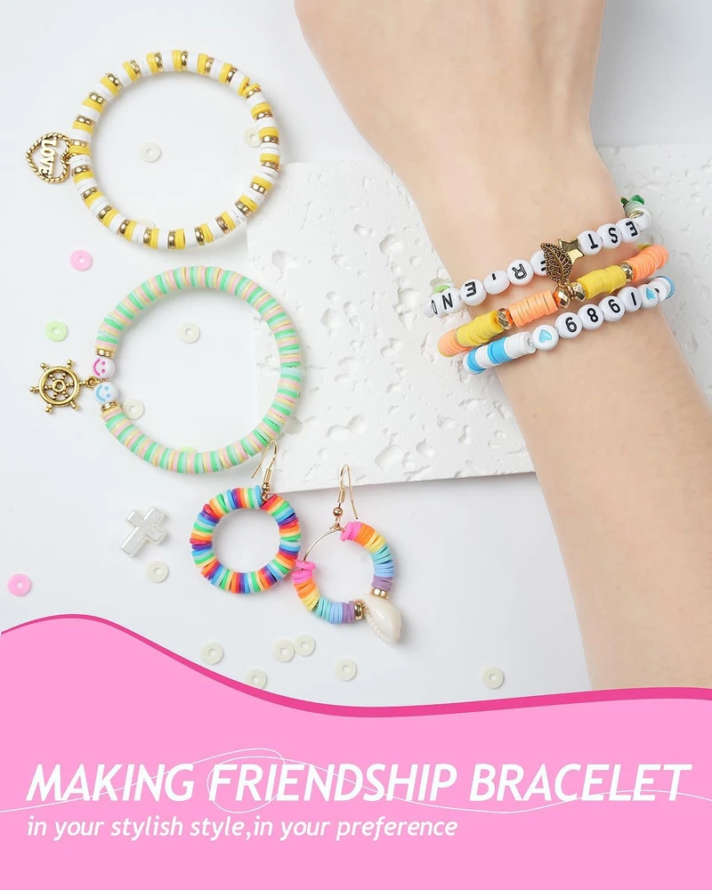 Store New Arrivals Add to Favorite View Feedback Contact Fast deliveries to the customer's home Quality customer service John Make the customers happy! Clay Beads Bracelet Making Kit 6000 Pcs Flat Preppy Beads for Friendship Jewelry Making Polymer Heishi Beads with Charms Gifts for Teen Girls Crafts for Girls Ages 8-12 Description Vast Quantity: This package includes a whopping 6000 clay beads, providing an abundant supply for all your crafting needs. Versatile Material: Made from high-quality clay, these beads are durable and suitable for a wide range of projects. Ideal for Jewelry Making: Utilize these beads to create stunning necklaces, bracelets, earrings, and other jewelry pieces. Craft Projects Galore: Explore your creativity by incorporating these beads into various crafts, such as keychains, decorations, and more. Convenient Packaging: The beads come neatly packaged, ensuring easy storage and organization for your convenience. Warning: CHOKING HAZARD -- Small parts. Not for children under 4 yrs. Product Description Item model number clay beads Item dimensions L x W x H 9.06 x 7.48 x 0.67 inches Age Range (Description) Kid Color 24 Fashion Colors Included Components Clay beads, Letter beads Material Plastic Country of Origin China Style Art Deco Item Weight 10.6 ounces Theme Clay beads, Bracelet making kit, Letter beads Model Name clay beads Seasons All Seasons Art Craft Kit Type Bracelet making kit Number of Pieces 6000 Special Feature Corded Product Dimensions 9.06 x 7.48 x 0.67 inches Paint Type Acrylic ABOUT US We offer the best prices around on high quality products. Our E-store includes media such as books, movies, music and games while offering electronics, toys, sporting apparel, clothing, tools, general home, garden items and more. SHIPPING We are always working hard to ensure your package arrives as soon as possible. Please understand that some factors like weather, high postal traffic, and the performance of shipping companies are outside of our control. We offer free shipping to the lower 48 states and ship within 2 business days of payment, usually sooner. We do not accept P.O. Boxes. Please provide a physical address. For shipping outside of the continental USA, we only use eBay's Global Shipping Program. The item is shipped to KY and then sent to the rest of the world. International customers are responsible for all duties and taxes. Continue to 'check out' to calculate costs for shipping the item to your country. Messages regarding eBay's Global Shipping Program MUST be directed at eBay EXCLUSIVELY. RETURNS We offer a 30-Day Return Policy on items in which you are not completely satisfied with. You have the option of a full-refund or an exchange of the item. No returns are available on items shipped outside of the USA PAYMENT We accept PayPal. CONTACT US This page content is yet to come Please ad us to your favorite seller and visit again later Thank You CUSTOMER SATISFACTION We try our very best to make sure every customer is completely satisfied. If there's a problem, message us! We're happy to help. WE ACCEPT