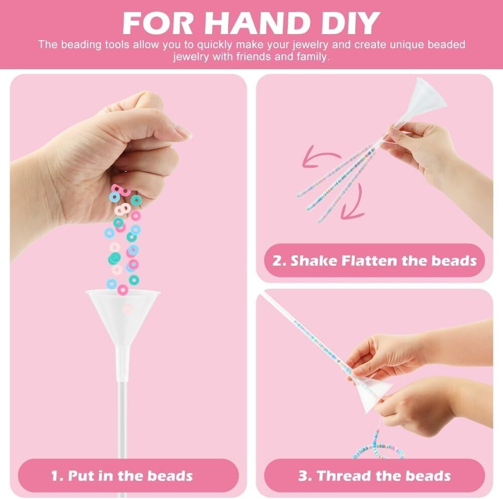 Durable Material: The funnel and tube are made from pvc, these tools are durable and long-lasting, suitable for extended use. The beading needles are made of stainless steel, not easy to break or go rusty, strong and durable. You can use string bead funnel kit for a long time and many times with confidence For Hand DIY: Come with clips, that can prevent the clay beads from slipping off the other end of the string.The beading tools allow you to quickly make your jewelry and create unique beaded jewelry with friends and family.You will enjoy a happy hand craft time Long Needles: The diameter of the beading needle is about 0.9mm, which can easily go through smaller size beads, wooden beads, plastic beads. The length is about 26cm,which is large capacity, the extra long needle can string more beads at once, saving time Jewelry Making: The bead funnel kit is for various clay bead crafts like bracelets and necklaces; transparent design allows for easy bead arrangement observation.You can make colorful bracelets, necklaces, waist chains and other beautiful jewelry Bead Funnel Kit: You will get 4pcs funnel,4pcs round tube,4pcs transparent cap,4pcs 0.9mm crochet hook,1pc coil,4pcs clip for quick and efficient beading; complete clay bead chain in under a minute,practical tool for making bracelet jewelry