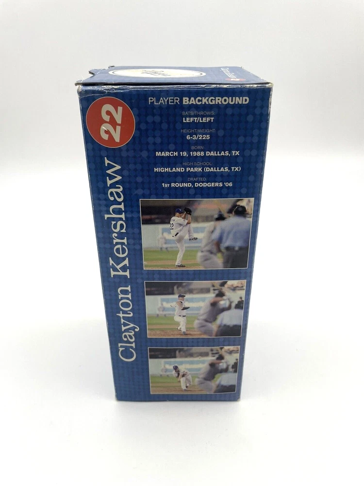 Player:Clayton KershawColor:Multi-ColorGender:Unisex AdultProduct:BobbleheadLeague:Major League (MLB)Brand:Los Angeles DodgersUPC:Does not applyPre & Post Season:Regular Seasongtin13:Does not applyTeam:Los Angeles DodgersCountry/Region of Manufacture:ChinaSport:Baseball