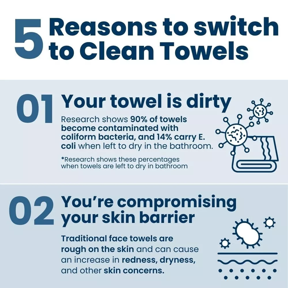 Clean Towels XL™, 100% USDA Biobased Face Towel, Disposable Face Towelette, Make