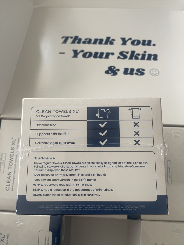 The Clean Skin Club Clean Towels XL™ are 100% USDA biobased disposable face towels, featuring a solid white color and a square shape. Made from a blend of paper and bamboo materials, these extra soft towels are designed for maximum absorbency and gentleness on the skin. With 50 towels included in each pack, this modern-themed product is perfect for adults looking for a convenient and eco-friendly alternative to traditional face cloths. Made in the United States by Clean Skin Club, these disposable towels are a must-have addition to any bathroom.