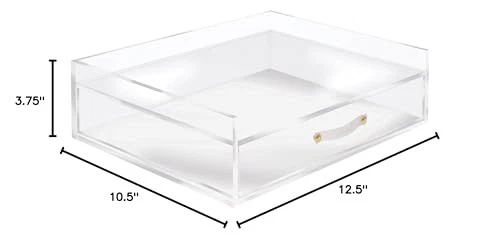 Pass up the ordinary for an aesthetically satisfying 12.5” x 10.5” x 3.75” acrylic inbox and drawer combination that brings inspiration and beauty to your desk. With a thin, side-loading paper tray on top of an elegant storage drawer, this organizing solution demands attention by shifting the focus away from itself and toward your work. Durably constructed from hard cast acrylic with finely polished edges and gold toned hardware. Simply perfect on its own, this document tray and drawer integrates with the other pieces in our Stackable Bloc collection, including our acrylic inbox, valet + collator, and the acrylic pencil bloc. The world of lies at the intersection of color, function and light-heartedness. We have an instantly recognizable style language, developed through colors and patterns that capture the essence of who we are and what we stand for. Our philosophy is that good design is not over-design or design for design’s sake, rather pleasing design with loads of functionality. While fresh in spirit, the products represent a constant and complete dedication to quality. Keep your inbox tidy and organized; our 12.5” x 10.5” x 3.75” side load letter tray with integrated drawer in clear acrylic gives clutter nowhere to hide, inspiring you to stay on top of the workflow Fresh and inspiring design; fashion and function converge in a distinctive yet unassuming design that will elevate your workspace at home or in the office A modest presence on your desk; the low profile and neat footprint helps keep your desktop orderly and approachable Where style meets substance; crisp modern design realized with flawless, polished edge construction and gold toned hardware. Rubber Handle Expanding to meet your needs; enjoy the simplicity of an inbox and drawer, or use in conjunction with our Stackable Bloc line of acrylic desk accessories