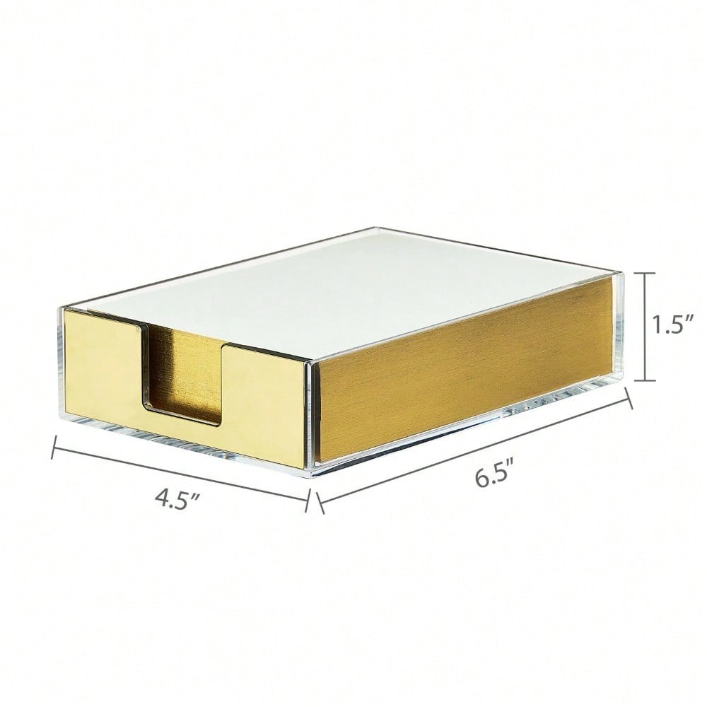 Enhance your workspace with the Pen+Gear Acrylic Notepad Set. Measuring 6.3 by 4.4 by 1.5 inches, this compact and stylish note holder is ideal for keeping your notes, memos, and reminders organized. Made from high-quality acrylic, it has a sleek, clear design that blends seamlessly with any decor, while allowing easy visibility of your notes. Its sturdy construction ensures that it remains a reliable and elegant addition to your desk or workspace. With 300 sheets, this pad has plenty for lists, notes, and reminders. The gilded edges add elegance and sophistication. Don’t forget to check out other Pen+Gear products—letter trays, desk organizers, desk caddies, and much more for all your organizing needs. The Pen+Gear Acrylic Notepad Set is the perfect blend of style and function. Pen+Gear Acrylic Notepad Set, 6.3" x 4.4" x 1.5", Clear and Gold, 300 Sheets Includes 300 memo sheets Ideal for keeping notes within reach without occupying much space Transparent acrylic provides a modern, minimalist look that complements any decor while keeping notes visible Made from high-quality acrylic, this note holder is durable for daily use Dimensions: 6.3 x 4.4 x 1.5 inches