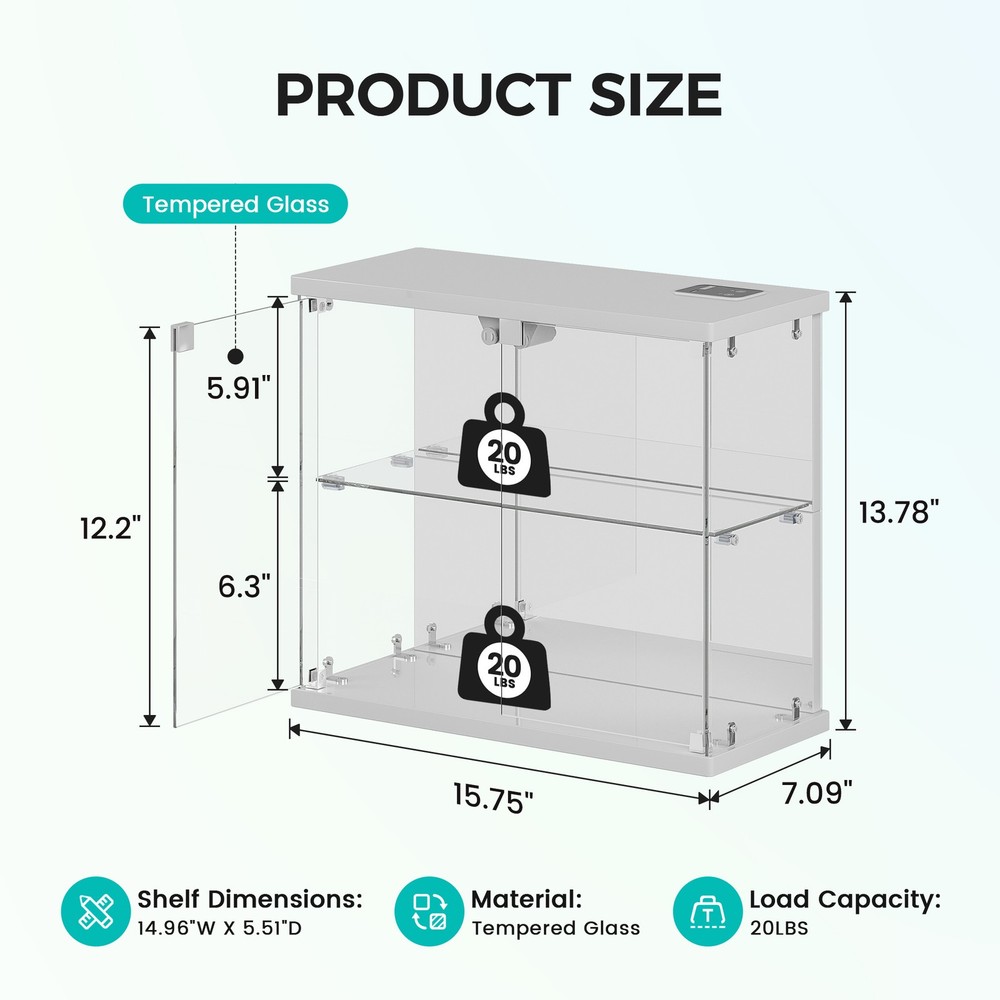 Magnetic Door with Safe Tempered – Featuring a press-to-open design, you can easily access your items with just a gentle push. This display box utilizes explosion-proof tempered glass is both crystal clear and safe. It effectively dustproofs and yellowing resistance that let your small Lego displays, perfumes, toys, or décor can be completely visible Light Control Module with Motion Sensing - This smart showcase upgrades your collection display with built-in LED lights(white, yellow, blue). The human sensor automatically switches the lights on when you approach within 1 meter, and turns them off after 30 seconds, achieving both energy efficiency and a stunning visual display Integrated Charger Station – This display organizer comes equipped with a built-in Type-C and a USB port, enabling simultaneous charging for two devices. Conveniently power your phone, tablet, earbuds, or smartwatch without the need for extra adapters. Keep your essentials fully charged overnight while maintaining a clean, cable-free display surface Mirrored Back Panel – With a mirrored back, this glass display case reflects your collectible figurines, visually expanding the space and adding remarkable depth to each piece. Not only does it brighten the entire display, but it also turns any ordinary space into a dynamic and eye-catching part of your bedroom Easy Assembly with Clear Instructions – Each panel is clearly labeled, and detailed step-by-step guides will walk you through the process. For optimal ease, using power tools is better. Enjoy a creative hour of assembly as a rewarding project with your partner or family Our product frames are all made of FSC-certified wood Lighting for Your Display harge Hub for Your Desk Tempered Glass: Why It’s Clearly Better Gifts to Display & Delight