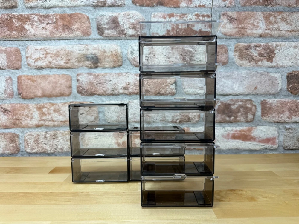 This listing is for 10 individual pieces Fits a wide range of Cars from Matchbox, Hot Wheels, plus many other 1/64 collectibles Transparent on all sides with a tint of gray Can stack as many as you want, creating your own unique display