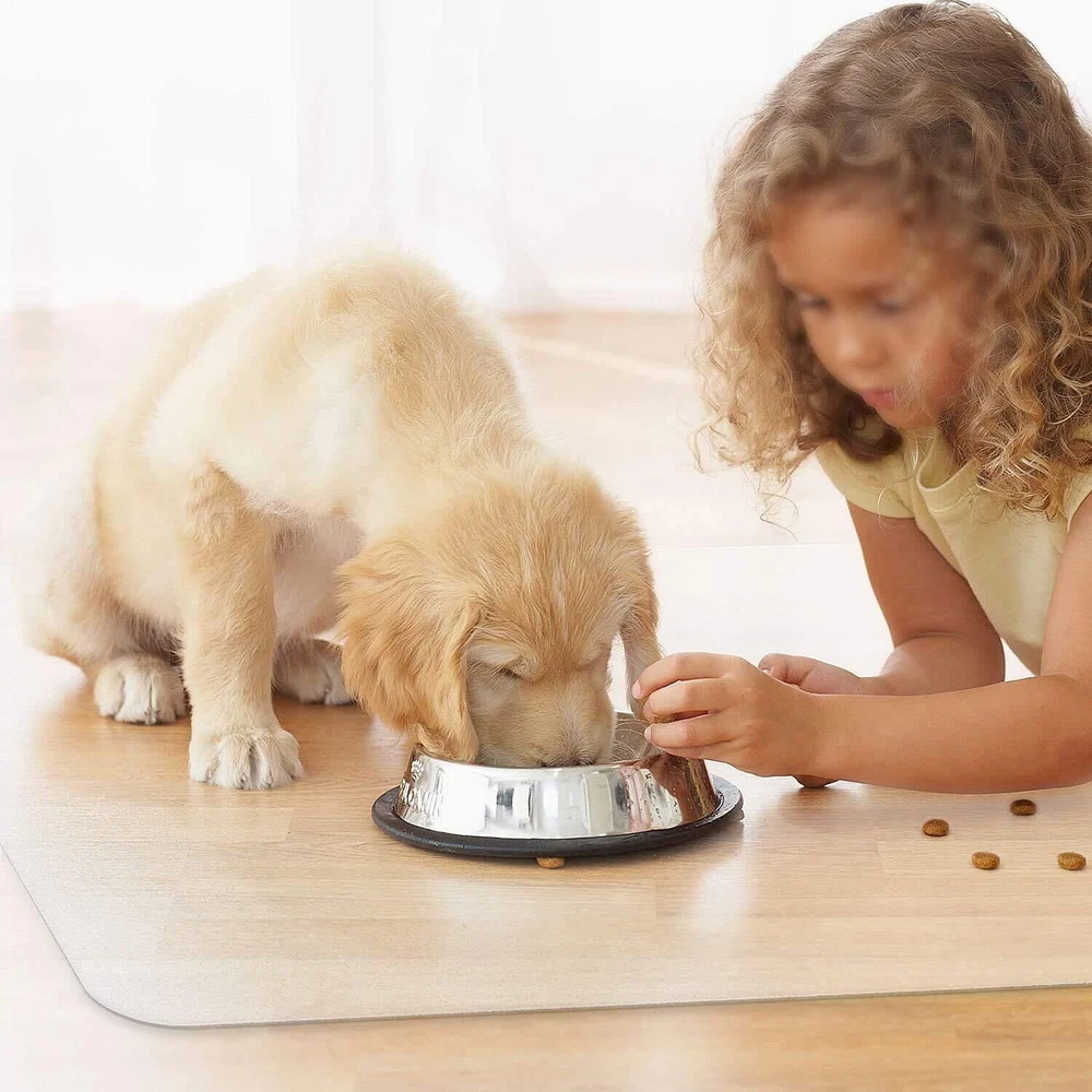 📗Our hard floor chair mat is made of thick PVC, No off-gassing - Odorless, no BPA, phthalate or toxins. When it gets dirty easily wipe your plastic chair mat with a wet cloth. This floor protector mat can give your floor and furniture the best protection, when flooring gets damaged it could be very costly to replace 📗Dull polish makes the scuffing less visible, the unique surface texture allows your office chair to move easily on this desk floor mat while carrying out daily tasks, but has enough grip to maintain controlled rolling so the chair doesn't skid around 📗This plastic floor mat can effectively block the surface of objects and reduce the scratches when your furniture is moving on the floor. It’s made to be convenient for persons who constantly move around in their office chair 📗Superior PVC material makes our desk chair mat durable and reliable for long-lasting use. This office chair mat is specially designed to protect any hard flooring surface such as hardwood, tile, laminate, concrete, and vinyl floors with its scuff resistant material 📗Clear design will complement any decor of your home or office. Spend most economical money buy this best desk chair mat for hardwood floor. You will never regret for your choice when you got our clear mat