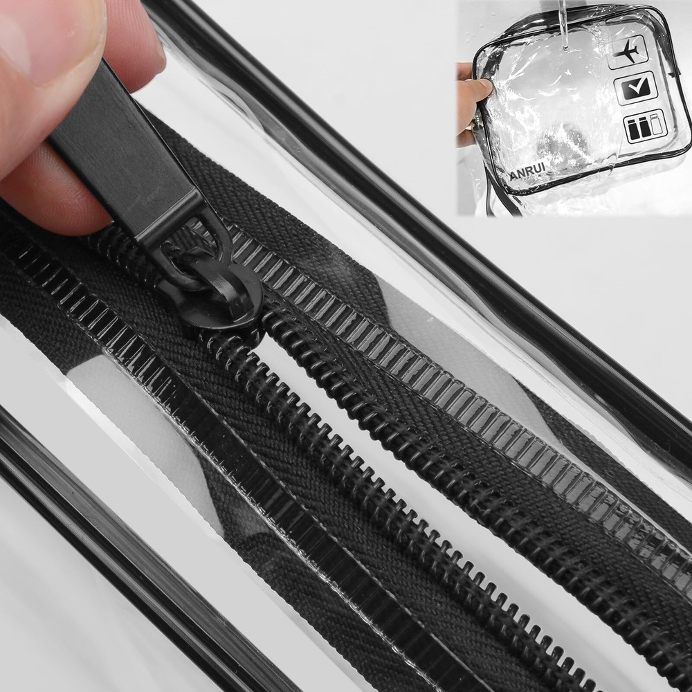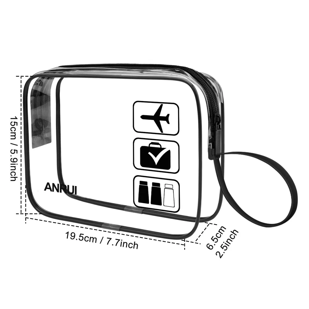 ANRUI 3pcs TSA-Approved Clear Travel Toiletry Bag With Handle Strap, Airline Kit 3-1-1 Clear Liquids Toiletries & Cosmetics Organizer Carry-On Luggage for Women and Men - Black TSA Approved:TSA approved toiletry bag/quart size bags are fully compliant with TSA 3-1-1 rules and regulations of all airlines. Get through airport security easy and fast. Save your time and no more hold ups or hassles at the airport See Through and Waterproof Secure: TSA airline toiletry bags are made of transparent PVC material, eco-friendly to see and get items quickly. Advanced seamless crimping process are waterproof to to hold all your items included Liquids, at least resistant to leaks. Enjoy your travel without worries Improved Zipper and Handle Strape: Sturdy smooth zipper, large zipper opening and luxurious zipper puller make it easy open and pack. And it is corrosion-resistant. Zipper bag is more durable than those inferior zip-top bags. With all research on toiletry bags, we add handle strape to make it more convenience Carry-on Size Stay Organized: Quart travel bag measure is 7.7 x 5.5 x 2.5 inches, convenient to carry on when you are travelling or go out. Ideal for liquids, shampoo, liquid soap, lotion, perfume, cosmetics, toothpaste, toothbrush, comb and so on Lightweight & Satisfactory Customer Service: The clear toiletry bag is less than 1 lb., perfect size to fit in your carry-on luggage for travel or vacations Description 1 Quart Standard Size TSA Approved Toiletry Bag 3 pack (Same Size), qualified 3-1-1 Rules in all the airports. Dimensions : 7*5.5*1.8 inch / 18*14*4.5 cm, about 1 Quart (1130ML) (If you want bigger size clear toiletry bags, please find another style in our store.) More Advantages: With this TSA approved toiletry bags, you will pass airport security quicker and easier. With better quality zipper, no stuck when you are using the toiletry bags. With these clear bags, you will easy organize travel essentials or daily stuff, such as toys, makeups, USB cables. With extra hand strap, easy to hold up the bags when you are organizing makeups. SHIPPING Domestic Buyers - We have confidence in our products, but if you are not fully satisfied please contact us within 30 days of purchase and you will get full refund. - We ship within 3 business days of payment, usually sooner - We offer FREE shipping on all orders! - We only ship to the lower 48 states, no APO/FPO addresses or PO Boxes allowed International buyers – please note: Import duties, taxes, and charges aren't included in the item price or postage cost. These charges are the buyer's responsibility. - Please check with your country's customs office to determine what these additional costs will be prior to bidding or buying. * Order Cancellation Policy ** You can return a product for up to 30 days from the date you purchased it. 1. The seller reserves the right to cancel the special case only due to eBay cancellation fee. 2. The decision of seller is the final. 3. The seller will respond to the cancellation request within 2 business days. Please wait for the result of cancellation. 4. In case the cancellation is not completed by some reasons, the buyer can follow the options below to get the refund. 4.1 The buyer can reject the item when it arrives. 4.2 The buyer can send the item back to the seller within 30 days If the buyer receives item (USA Shipment ONLY). The seller will provide the FREE return label to the buyer when the buyer opens " Return Item" case on eBay by using the reason as "Change my mind" ONLY. 5. When buyer has placed the order. The order will be processed and completed by automatic warehouse system within 5 minutes. In case that buyer sends the cancellation request after 5 minutes of placing the order, the request will be rejected. **Sending direct message to cancel the order is not allowed for every case.* Return Policy For the return case - If buyer would like to return the items for refund or replacement, please CONTACT SELLER to receive the free return label from seller. The refund or replacement will be processed with the tracking number of return label which is provided by seller only. The other ways of return which are not approved by seller will not be processed for the refund or replacement.