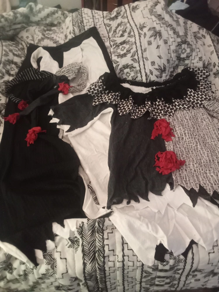 Joker or clown costume. Just in time for Halloween! Complete with hat, pants, and top. Size small. Handmade. Happy bidding!