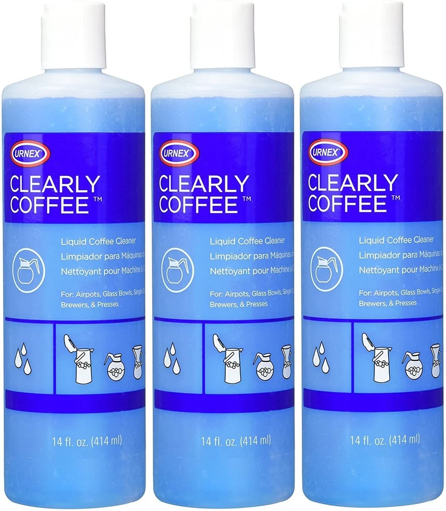 Cleans and removes coffee oils and inhibits additional mineral deposits For glass bowls, airpots, satellite brewers, and thermal servers Liquid provides counter top convenience NSF certified for metal compatibility and safety - Made in USA Blue color ensures proper rinsing Coffee is a naturally oily substance. These oils accumulate inside coffee pots after repeated use and, over time, cause beverages to taste bitter and unpleasant. If a machine is left alone without cleaning for long enough, coffee oil residue can cause clogging and blockages that render a machine unusable. Cleaning your coffee equipment with Urnex products helps to ensure proper hygiene, reliable performance, and a great tasting cup of coffee. Urnex offers a variety of cleaning formulations in tablet, liquid and powder form to suit the unique shapes, sizes and needs of coffee and espresso machines and the people who are operating them. Commercial brewers should be cleaned each night after service. This will prevent the accumulation of stale coffee oils which can impact the taste of the next day's brews. Weekly, take off removable parts such as site glasses, etc. and give these a thorough cleaning as well. Finally, always remember to wipe down the area around the spray head as splashed- back coffee can accumulate there as well. How often should I clean my commercial espresso machine? Commercial espresso machines should be cleaned by back flushing with espresso machine detergent each night. Nightly back flushing will prevent the accumulation of stale coffee oils in the group heads, shower screens and filter baskets of your espresso machine. Keeping these parts clean is essential to maintaining great tasting coffee over time. Weekly, you should soak portafilters and baskets in a solution of espresso machine detergent and water.