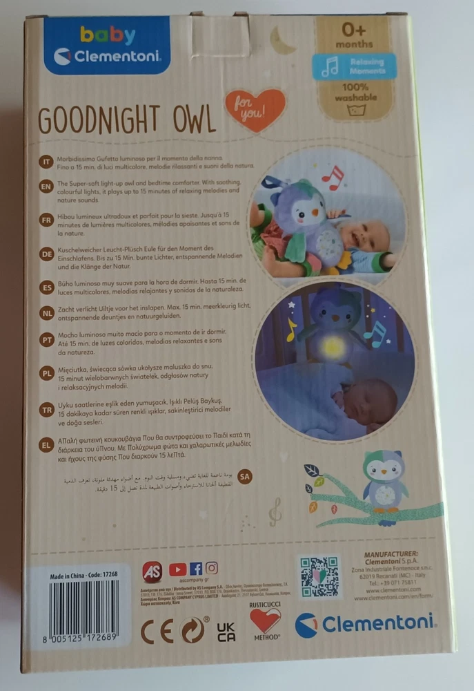 Clementoni Goodnight Owl Baby Toy New Multi-Color Lights and Melodies 100% Washable Original Owner This Band-New unopened Gift has never been taken out of its original box. 100% Washable Please fee free to message us with any questions