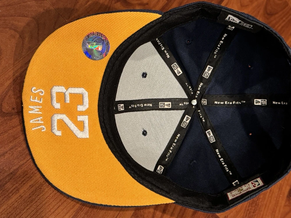 Show your support for the Cleveland Cavaliers and LeBron James with this stylish rare New Era 9Fifty snapback hat. The navy blue cap features the team's logo and LeBron's number 23 embroidered under the bill, perfect for any fan of the National Basketball Association. This unisex one size fits most adult hat is a must-have for any basketball enthusiast, whether you're watching the game at home or at the arena. Get your hands on this, which is not only a cap but also a statement piece, and show your love for the team and LeBron. Condition: New; coming from smoke free home. Offers accepted. Thank you for viewing.