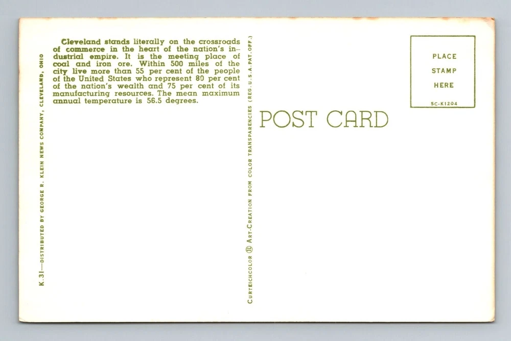 Country/Region of Manufacture: Unknown Theme: Cities & Towns Region: Ohio Original/Licensed Reprint: Original City: Cleveland Subject: Cities & Towns Unit of Sale: Single Unit Country: USA Postage Condition: See Image Type: Printed (Lithograph) Era: Vintage