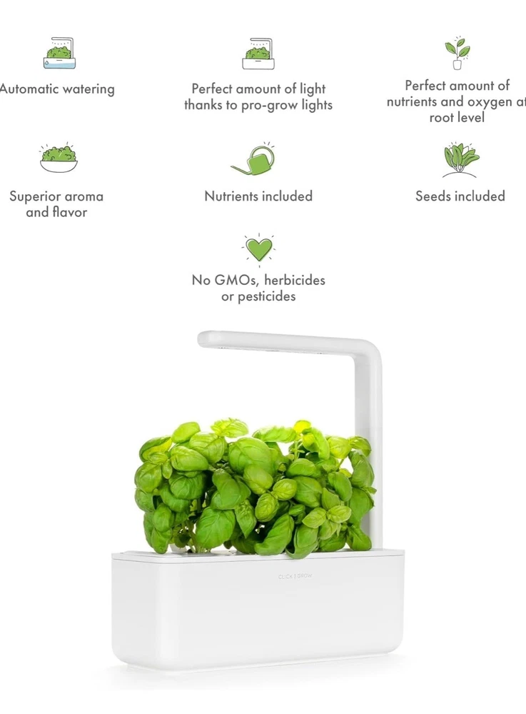 Pods not included Grow your own herbs with this Click & Grow Indoor Herb Garden Kit. The kit includes five hydroponic buckets, a grow light, and everything you need to get started. This system is perfect for growing herbs indoors and is ideal for those who want to enjoy fresh herbs year-round. The Click & Grow Indoor Herb Garden Kit is easy to use and maintain, making it perfect for both beginners and experienced gardeners. With its sleek design and modern technology, this hydroponic system is a great addition to any home. Get ready to enjoy delicious, fresh herbs with this amazing garden kit.