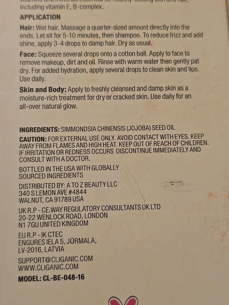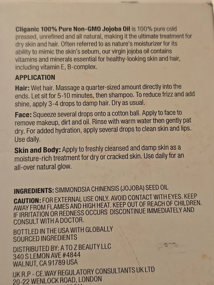 MPN:Does not applyDepartment:UnisexShipping:Free Shippinggtin13:810057560064UPC:810057560064Model:Does not applyIngredients:Jojoba OilType:Does not applyFeatures:Cold PressedSize:16 Fl Oz (Pack of 1)Brand:CliganicGift:Cute,Best,Funny,Girls,Kids,Boy,Girls