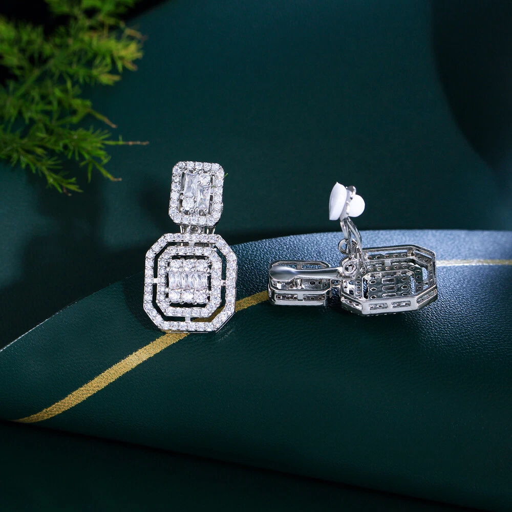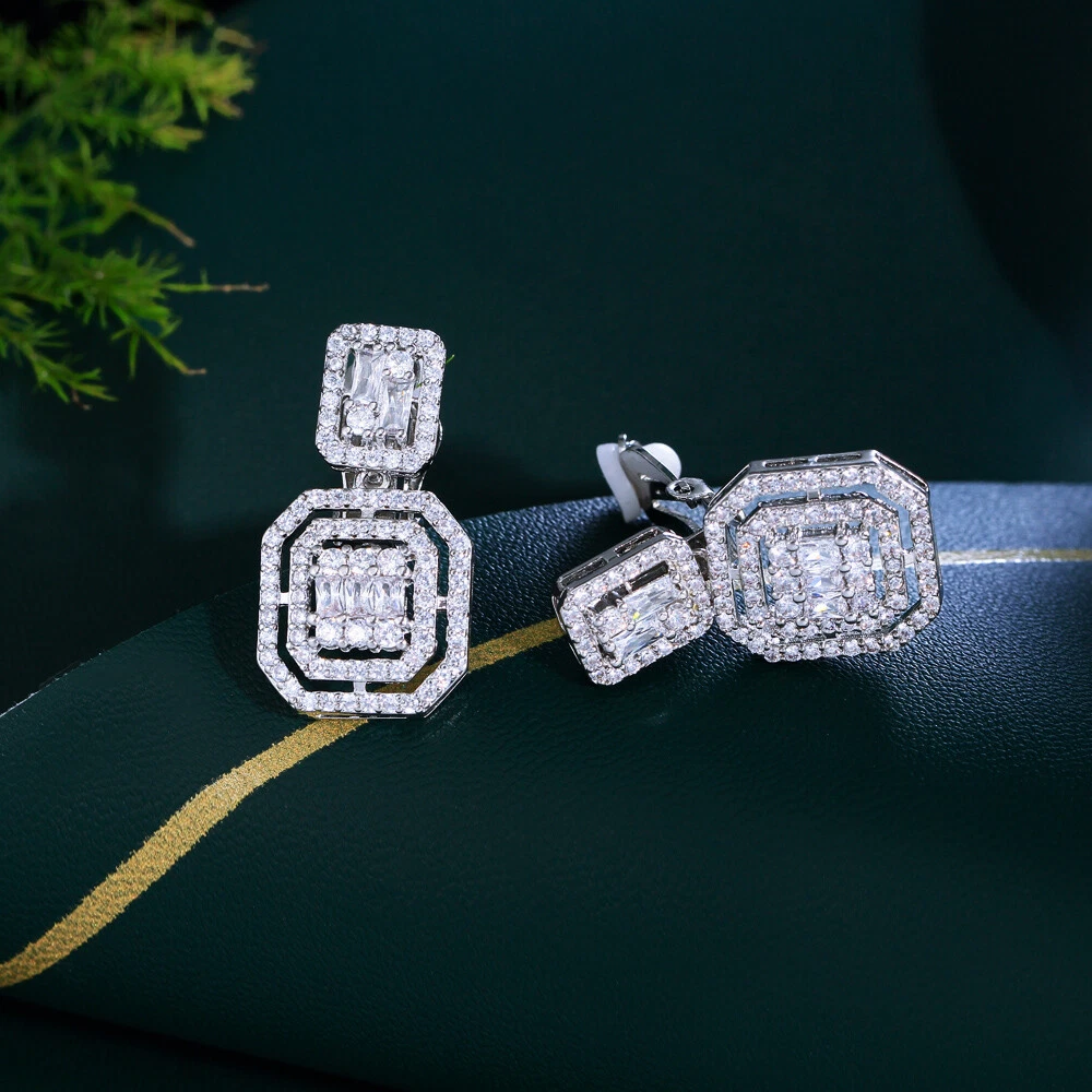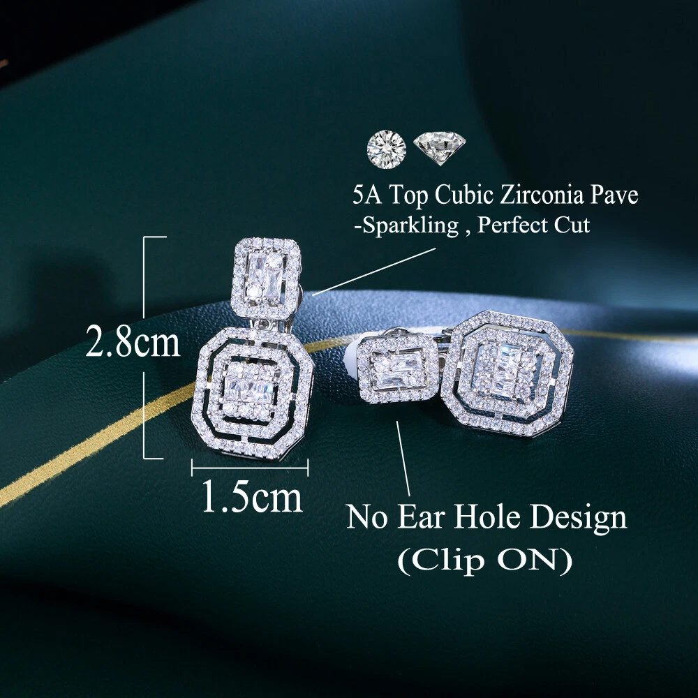 Clip On Square Dangle Cubic Zirconia Earrings Silver Plated Women Bridal Jewelry There’s an old saying that: Jewelry is woman’s best friend. And one appropriate luxury jewelry helps to spice up your charm and beauty. And here’s the reason why you choose us: ★ We adopts high-grade Cubic Zirconia, which displays pure and fascinating color; ★ All our items are Elaborate, Gold Plated (white gold plated/yellow gold plated/black gold plated), by which the texture is smooth and with fancy look, and will be appropriate for so many occasions; ★ Our items are with Exquisite Design, which shows your excellent taste, and could catch people’s attention easily. ★ Ideal gift for mother, wife, girlfriend, daughters, brides, bridesmaids, ect. Specification Type: Clip On Dangle/Drop Earrings Stone Material: Cubic Zirconia Base Metal Material: Brass Metal Material: Silver Plated Shape: Square Dangle Color: White Suitable Occasion: Daily, Holidays, Party, Engagement, Wedding, Anniversary, Valentine’s Day, Carnival, Performance, ect. Package Includes 1 Pair of CZ Clip On Drop Earrings Please note: *Please bear in mind that there might be 1~2cm difference due to manual measurement. *Our digital images are as accurate as possible. However, different monitors may cause colors to vary slightly. *We offer after-sale service, if there is any item problem, please feel free to contact us via eBay message first, your kind understanding is much appreciated. About Us Payment Shipping Returns Contact us About Us Topjewel33 is a newly-established online store which dedicates to provide excellent luxury jewelry products, such as earrings, rings, necklaces, bracelets, brooches, hair accessories, and high grade jewelry sets. We target worldwide market, and we strive for offering you unbeatable low price and satisfied customer service. Payment We accept PayPal payment only. Payment must be received within 7 days from the date of purchase. Shipping We do hope all our customers could receive the order asap, so normally, the order will be sent out within 2 working days. And as the delivery is handled by the third party, sorry that we could not guarantee which date you could receive the package. And sometimes the delivery might be a little bit delay, especially in high volume or holiday seasons. However, please don’t worry and feel free to contact us via eBay message, and we will do our best to help. And we sincerely apologize for any inconvenience may cause. Sometimes custom tax might be required, and we are afraid that it will be covered by the buyers, thank you for kind understanding. Returns We provide 30 days money back return policy. And if you have any problem with the item, please make sure the item is in the original package and feel free to contact us via eBay message first, thank you for kind understanding and cooperation. Contact us We offer customer service, if you have any problem with the item before/during/after the purchase, please feel free to contact us via eBay message, and we will get back to you asap. Thank you for your kind patience.