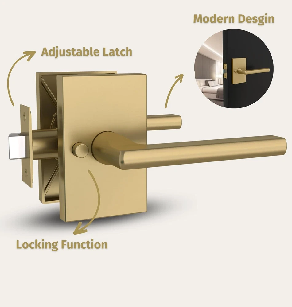 Product Description Closet and Bathroom I Reversi... Privacy I Lever Door Handle Set for Hallway Privacy I Lever Door Handle Set for Hallway, Closet and Bathroom I Reversible Heavy Duty Design I Fits all Standard Door Sizes I Screws Included - Satin Brass (1 Pack) ✅ STYLISH DOOR HARDWARE - Our modern contemporary slim square design of our Privacy Door Levers makes an impressive addition to any doors that a locking function, such as bathrooms, closets and bedrooms. Handle Dimension: 5" ✅ FULLY REVERSIBLE DESIGN - Its reversible design makes our Door Lever Handles very versatile as they can be installed on both left-handed and right-handed doors of all standard sizes – all thanks to the adjustable latch! ✅ EASILY ACCESSIBLE - Our No Lock Door Handles meet ADA/ANSI A117.1 requirements which ensure easy access for all persons with disabilities. Also, it prevents babies from being locked in a room. ✅ INSTALLS IN MINUTES - Simply grab a screwdriver and you can install it in minutes - no professional hand needed! All the necessary screws and diagram template for installation are included. ✅ SATISFACTION GUARANTEED - Our Privacy door knobs are ANSI/BHMA certified, ensuring that they meet industry standards for safety and security. Contact Us We reply any email messages within 1 business / working days(off-duty at weekend). If you do not get a response from us, then please check your junk or spam mailbox. Our Business hours: Mon-Fri 9:00-18:00, UTC/GMT +8 hour s . Please contact us either by clicking "contact seller" in the "purchase history" section or simply click "ask a question" at the bottom of this page. If you are unsatisfied with our item or service, please contact us before leaving any feedback. We are committed to resolve all issues in a friendly and satisfactory manner. To provide you with better service, please provide the following information in your email: Your ebay ID Order problem, order number For product questions, the eBay article number, the product URL or the product SKU Unfortunately, the eBay guidelines do not allow us to provide a phone number. But if you'd rather call please send us an email. powered by