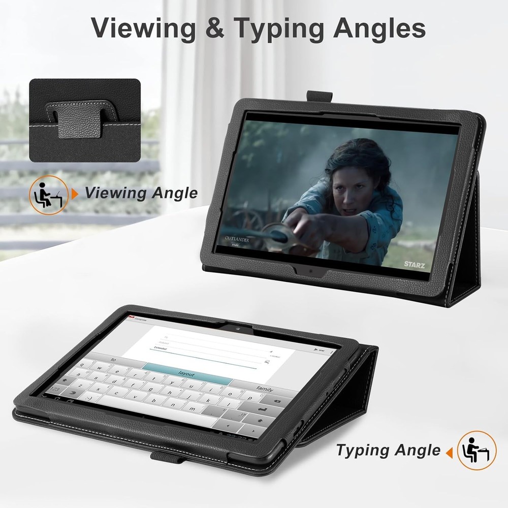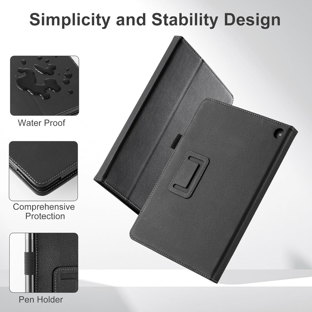 CoBak Case for All New Fire HD 10 13th Generation,2023 Release, A-Black Product Details Package Dimensions: 14.72 x 10.94 x 0.43 inches Item Weight: 10.5 ounces Special features: Auto Wake/Sleep, Magnetic Closure Form Factor: Case Color: A-Black Manufacturer: CoBak Brand: CoBak Compatible Devices: Tablets Shell Type: Soft FEATURES: The case is constructed from a single piece of polyurethane to protect the front and back of your device. And the interior Hand Strap gives you a comfortable single-handed use experience. VIEWING ANGLES: The foldable front cover supports 30-degree and 60-degree standing angles. You can easily fold the Smart case into different positions to create a stand for reading, viewing, typing, or making video calls. AUTO WAKE/SLEEP: The magnetic fire hd 10 case automatically wakes your device when opened and puts it to sleep when closed. And the magnetic closure keeps the cover securely closed, protecting your device from dropping out. Reliable and Durable: Meticulously constructed with top-tier quality materials, our product exudes reliability and durability, ensuring your purchase is a confident choice.
