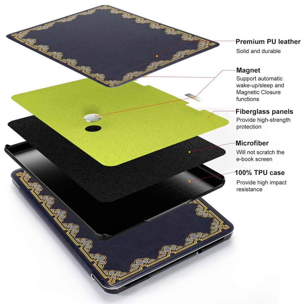 Perfect Fit: Our case is expertly designed to fit the all-new Kindle Paperwhite 12th Gen & Kindle Paperwhite Signature Edition 2024 (7") & Kindle Colorsoft Signature Edition (7"), ensuring a snug and secure fit. AUTO WAKE/SLEEP: With the built-in smart cover,your Kindle e-reader will be woke up or put to sleep seamlessly. All you need to do is to enjoy reading.Magnetic Closure: The magnetic design helps the kindle cover close securely, providing a 360 degree protection for your device MATERIAL: Features the premium waterproof PU leather exterior, anti-scratch microfiber interior and 100% Polycarbonate case. This will definitely be a perfect choice of kindle case for you Lightweight and Travel-friendly:Lightweight case gives your device maximum protection without adding extra bulk.Put it in your bag and you can enjoy reading anytime and anywhere Reliable and Durable: Meticulously constructed with top-tier quality materials, our product exudes reliability and durability, ensuring your purchase is a confident choice