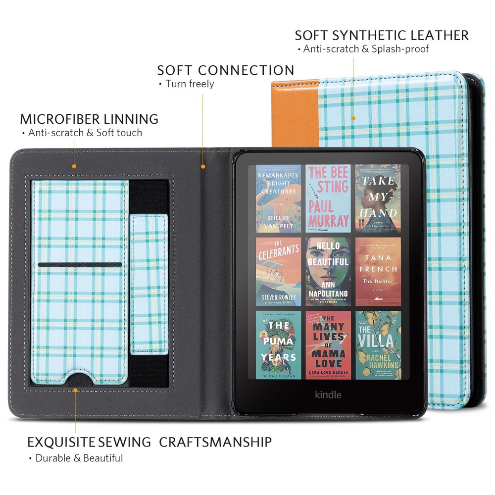 Perfect Fit: Our case is expertly designed to fit the all-new Kindle Paperwhite 12th Gen & Kindle Paperwhite Signature Edition 2024 (7") & Kindle Colorsoft Signature Edition (7"), ensuring a snug and secure fit. MATERIAL: Features the premium waterproof PU leather exterior, anti-scratch microfiber interior. This will definitely be a perfect choice of kindle case for you KICKSTAND: Foldable stand design could set your hands free during your reading. Build-in card slot is convenient to store your cards and cashes HAND STRAP: The bulit-in hand strap enables holding a kindle paperwhite in one hand, so you can indulge in the reading without any tiring feeling AUTO WAKE/SLEEP: The magnetic kindle paperwhite case automatically wakes your device when opened and puts it to sleep when closed. And the magnetic closure keeps the cover securely closed, protecting your device from dropping out