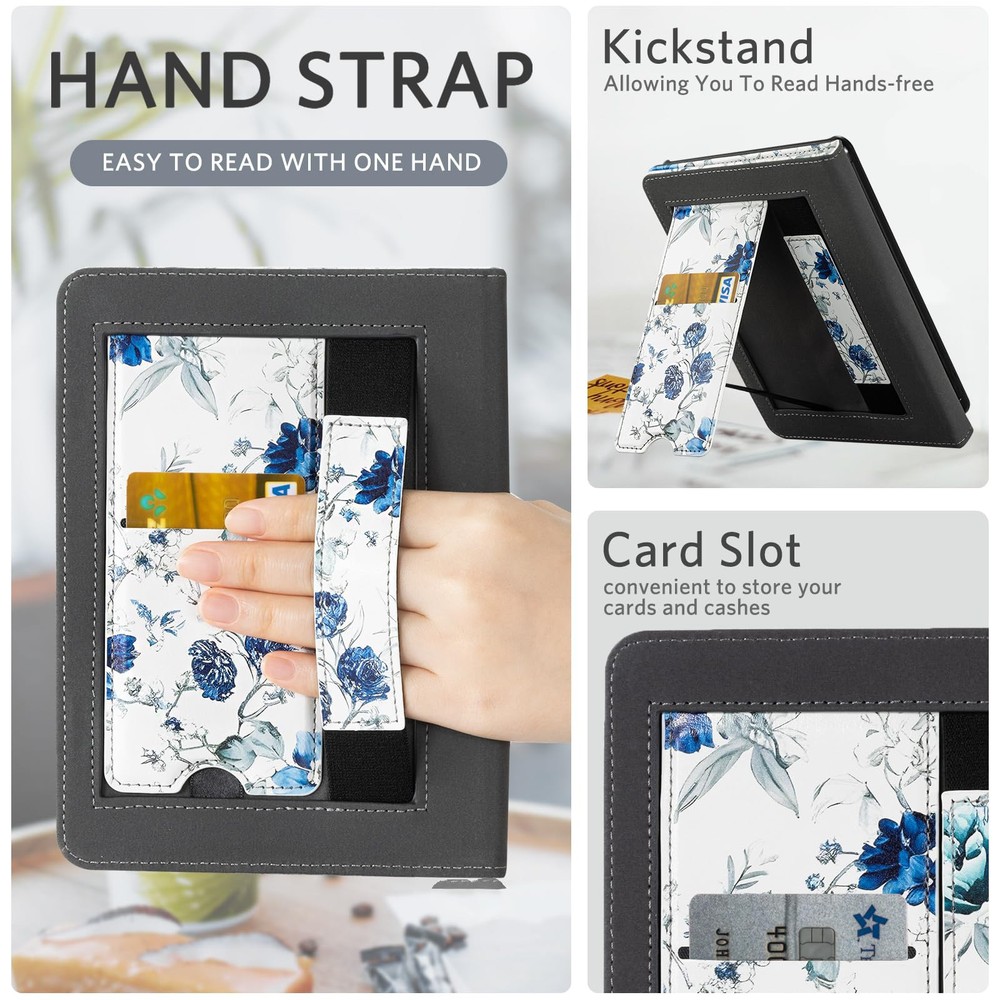 Perfect Fit: Our case is expertly designed to fit the all-new Kindle Paperwhite 12th Gen & Kindle Paperwhite Signature Edition 2024 (7") & Kindle Colorsoft Signature Edition (7"), ensuring a snug and secure fit. MATERIAL: Features the premium waterproof PU leather exterior, anti-scratch microfiber interior. This will definitely be a perfect choice of kindle case for you KICKSTAND: Foldable stand design could set your hands free during your reading. Build-in card slot is convenient to store your cards and cashes HAND STRAP: The bulit-in hand strap enables holding a kindle paperwhite in one hand, so you can indulge in the reading without any tiring feeling AUTO WAKE/SLEEP: The magnetic kindle paperwhite case automatically wakes your device when opened and puts it to sleep when closed. And the magnetic closure keeps the cover securely closed, protecting your device from dropping out