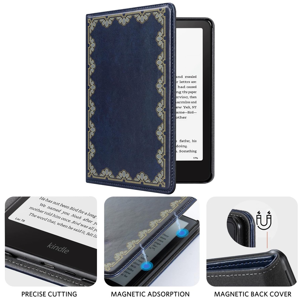 Perfect Fit: Our case is expertly designed to fit the all-new Kindle Paperwhite 12th Gen & Kindle Paperwhite Signature Edition 2024 (7") & Kindle Colorsoft Signature Edition (7"), ensuring a snug and secure fit. MATERIAL: Features the premium waterproof PU leather exterior, anti-scratch microfiber interior. This will definitely be a perfect choice of kindle case for you KICKSTAND: Foldable stand design could set your hands free during your reading. Build-in card slot is convenient to store your cards and cashes HAND STRAP: The bulit-in hand strap enables holding a kindle paperwhite in one hand, so you can indulge in the reading without any tiring feeling AUTO WAKE/SLEEP: The magnetic kindle paperwhite case automatically wakes your device when opened and puts it to sleep when closed. And the magnetic closure keeps the cover securely closed, protecting your device from dropping out