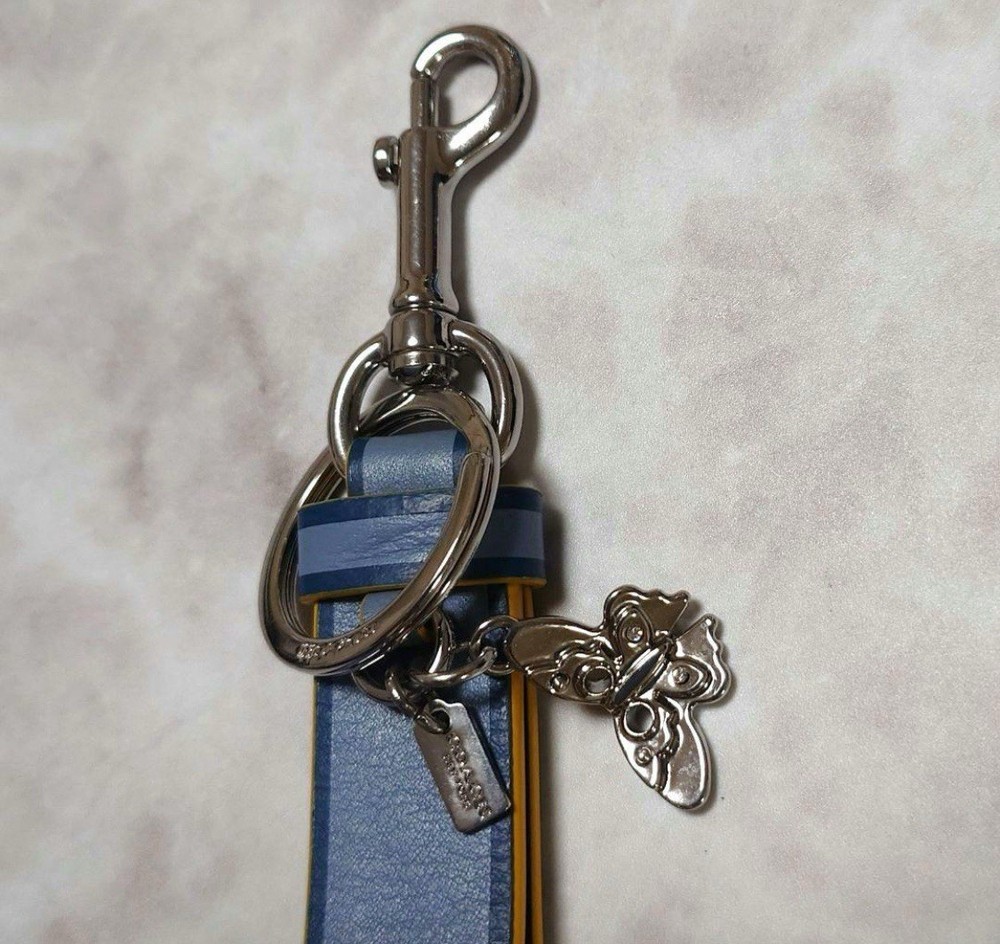 This Coach keychain charm is absolutely stunning—the mix of blues with a pop of yellow gives it such a vibrant look, and the delicate silver butterfly adds a touch of elegance. Even though it's preowned, it’s in fantastic condition, with only minor discoloration at the loop’s tip. The photos show it clearly, so you know exactly what you're getting. A rare find at a great price! Shipping is affordable with tracking, making it a smooth purchase. Highly recommend!