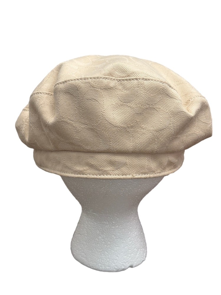 This Coach women's hat is a stylish addition to any wardrobe. The beige color and kissing C's pattern make it perfect for a variety of occasions, from travel to workwear to parties. The hat features a twist lock and Coach logo accents, Poppy collection lining, adding a touch of designer flair. Made from a lightweight and comfortable blend of polyester and cotton, this hat is perfect for all seasons. The jacquard fabric type ensures durability and longevity, while the lined interior provides added comfort. With its versatile style and multiple themes (including designer, hippie, punk, peasant, city, classic, retro, and logo), this hat is sure to become a favorite among fashion-conscious women. Brand New Without Tag! No damage! Thank you for stopping by!