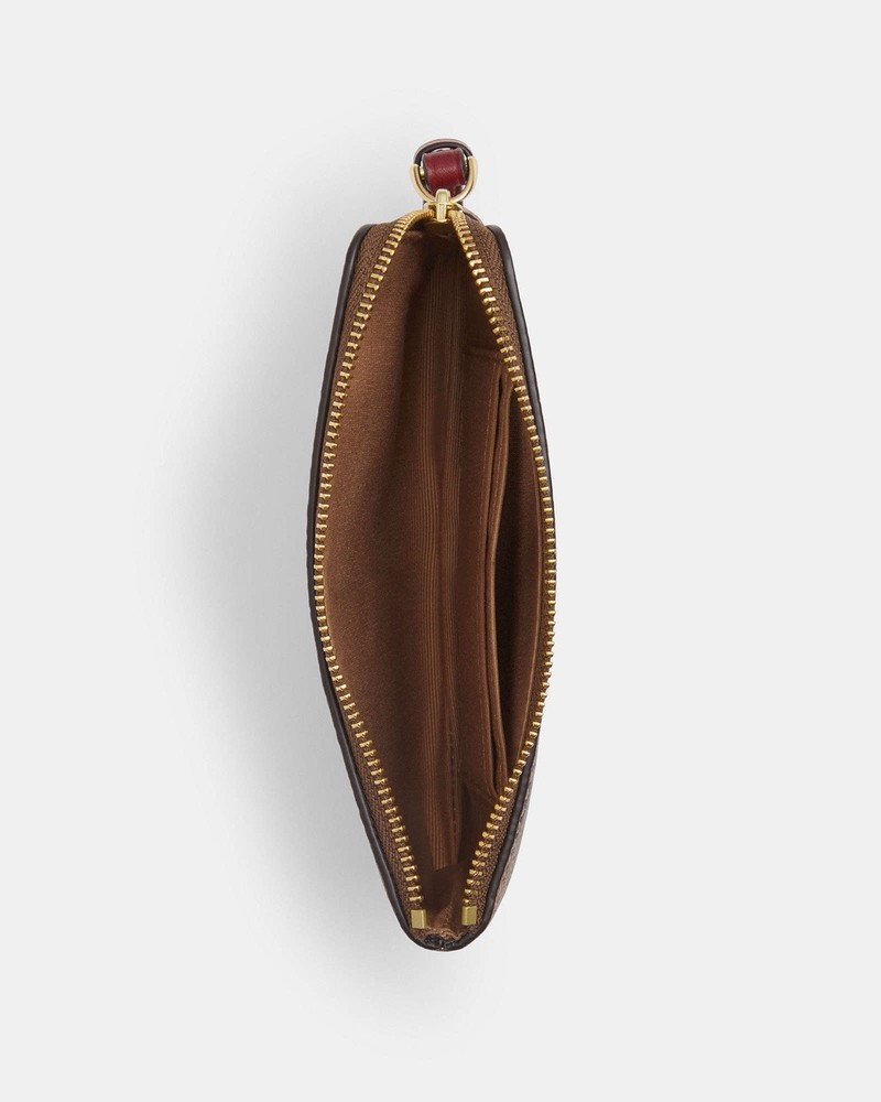 Coach Corner Zip Wristlet In Signature Canvas With Cherry Print Brand new with tags 100% Authentic Style Number CZ450 Measurements Length: 6.25" Height: 4.0" Width: 0.5" Materials Signature coated canvas Fabric lining Features Two credit card slots Zip-top closure Wrist strap attached Editor's Notes Our Corner Zip Wristlet in Signature canvas is an everyday essential that won’t weigh you down. Compact yet functional, this small wristlet wallet has space for your keys, cards and even an iPhone (up to a 15 Pro Max). Featuring a sweet print, this cherry wristlet is finished with a strap for ease and a zip-top closure to secure your items. To keep your cards handy on the go, organize them in the convenient built-in slots. Price is firm