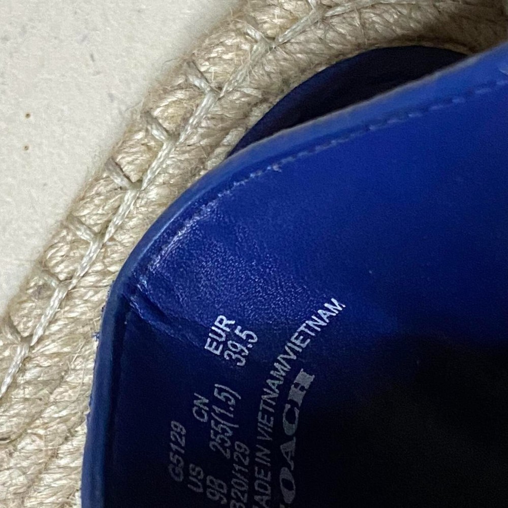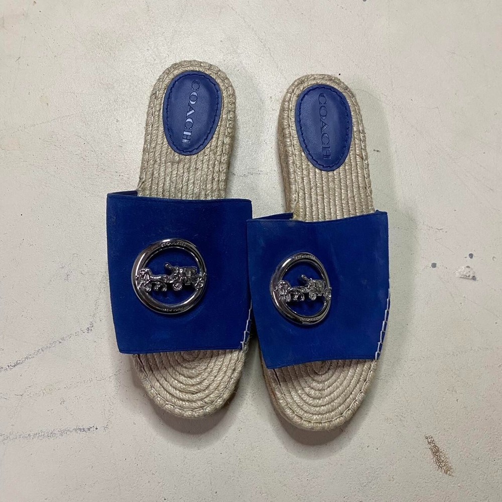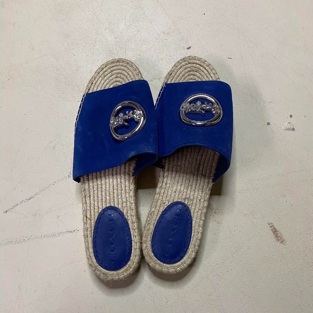 Coach Camille Blue Suede Espadrille Slide Sandals Size;9 measurement's ; In photos:) FREE Shipping within Canada!☺️20 worldwide 🌎 Message for any questions on bundle deals, measurements , or anything else you might need, Thanks for looking !🙏 Measurements are all taken by me with item in hand. Measured with garment laid flat. Shipping Information I am from Canada Shipping Times Packages will be shipped within 1-2 days after the order is placed. I provide a tracking number. Some counties may have to pay custom fees and duty fees please be aware. Shipping time depends on the country of destination and usually takes: * 5-10 days to the USA with standard shipping * 4-15 days to Asia with standard shipping * 10-25 days to Europe with standard shipping * 3-5 days to Canada with standard shipping * 5-15 days to Australia with standard shipping Photographs Disclaimer All product images are taken by me to accurately represent the items you will receive. Please note that the actual colors may vary due to differences in lighting and monitor settings. Return Policy We accept returns within 30(can be more depending on situation) days of RECEIVING the item. Please review our full return policy for details. Buyer is responsible for return shipping costs. Contact Us If you have any questions or concerns, please dont hesitate to contact us. We are here to assist you. Your satisfaction is our top priority.