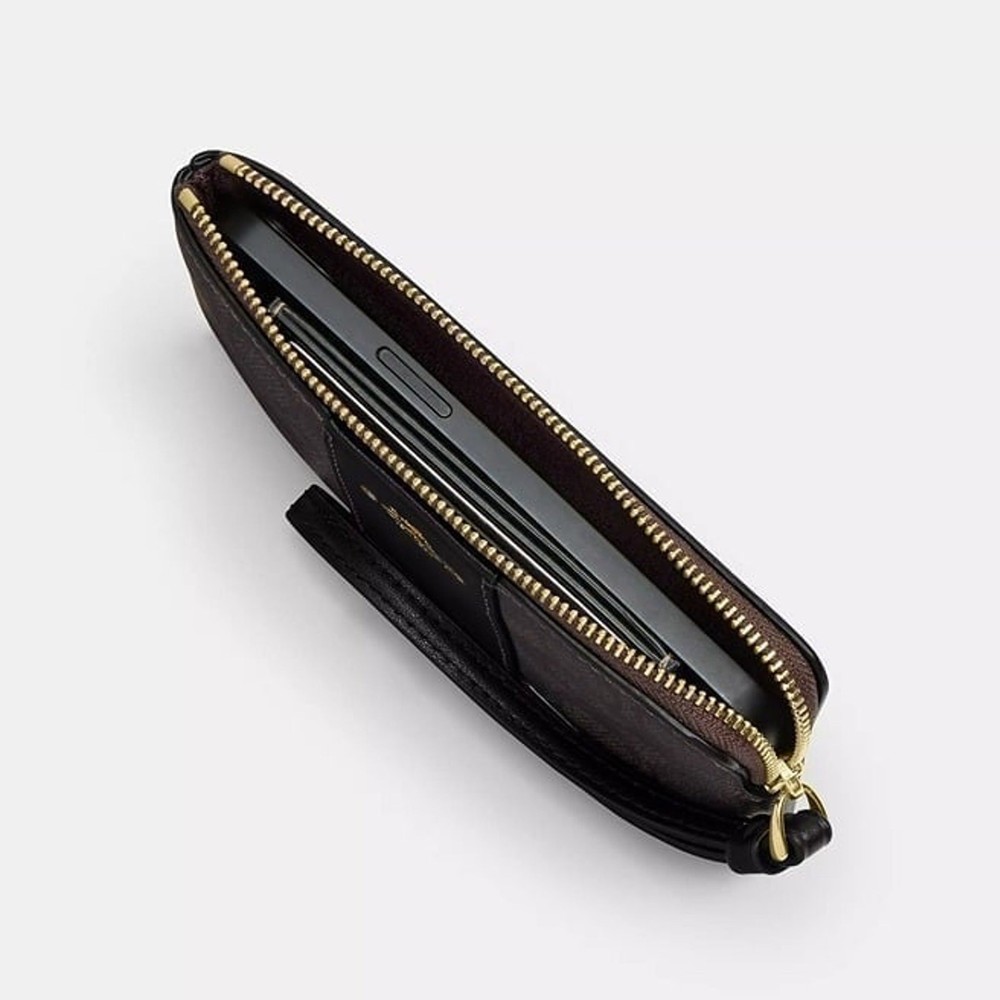 Product Details Style Number CZ441 Measurements Length: 6.25" Height: 4.0" Width: 0.5" Materials Printed coated canvas Fabric lining Strap Wrist strap attached Features Two credit card slots Zip-top closure Placement of the bow print may vary