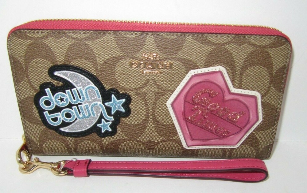 NWT Coach C6995 giftable Signature Disco Patch Long Zip Around Wristlet Wallet Color: IM/Khaki Multi Details: Signature Canvas and Smooth leather Twelve credit card slots Full-length bill compartments Inside zip coin pocket Zip-around closure Detachable wrist strap 7 1/2" (L) x 4" (H) x 1" (W) 👉Please review all photos, dimensions and descriptions thoroughly before your purchase.👈 Thank you! Please feel free to contact me if you have any question about this product before your purchase! I respond very soon. *Please note that the color in pictures might differ slightly due to lighting, flash and screen resolution.